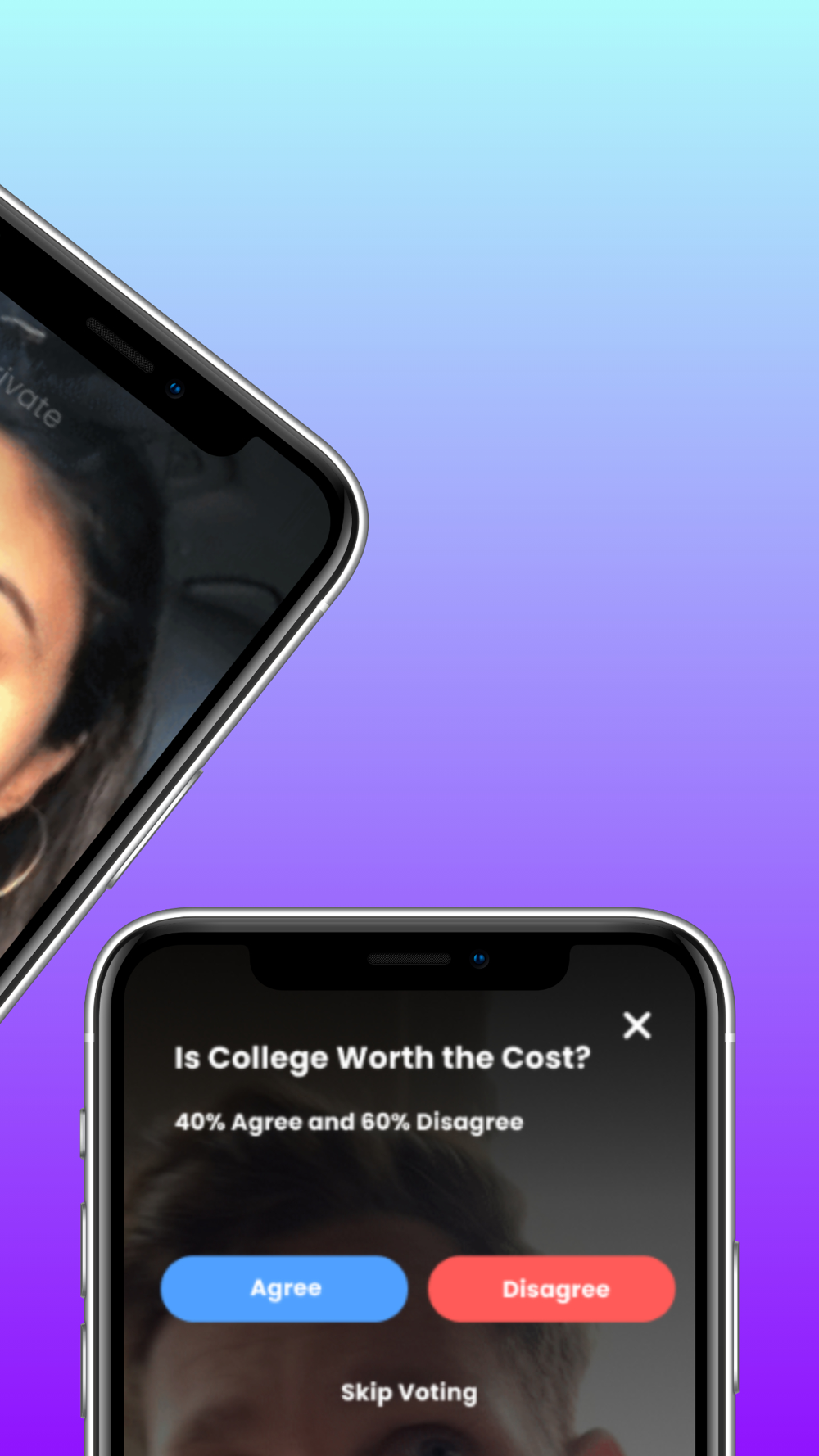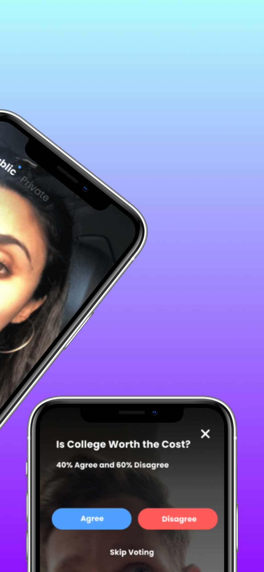 Our app allows people to create videos so other members of the community can respond through their own short-form videos. Our key value is put your face behind what you say to take accountability for your opinions and creations on the app.