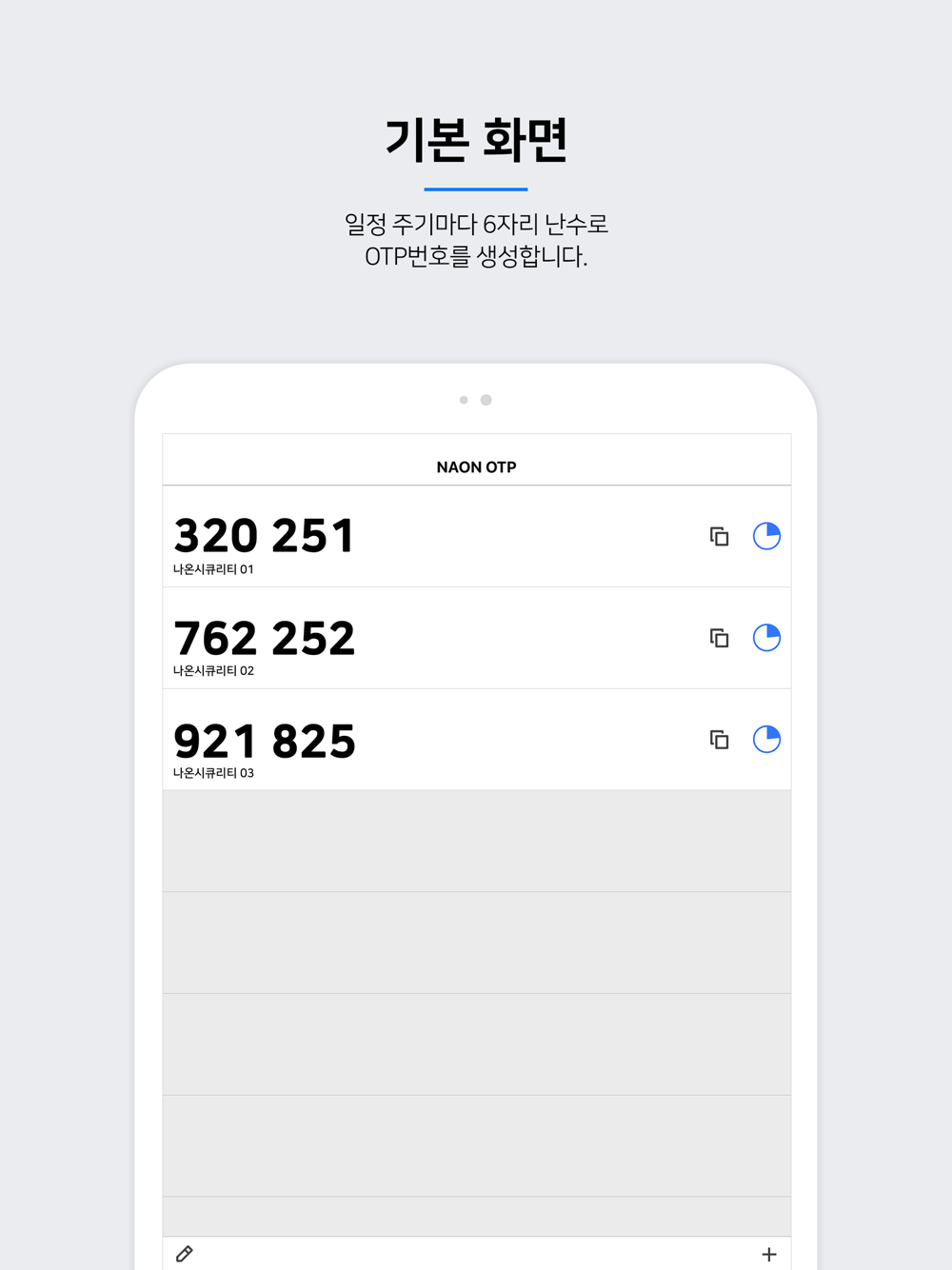 나온OTP(One Time Password)는 휴대전화에서 2단계 인증 코드를 생성합니다.