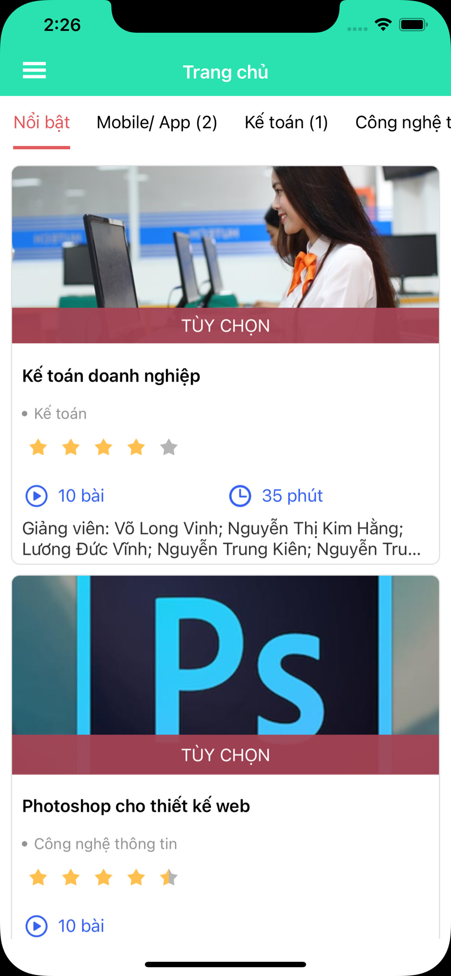 - Người dùng có thể xem, tìm kiếm thông tin khóa học một cách dễ dàng.