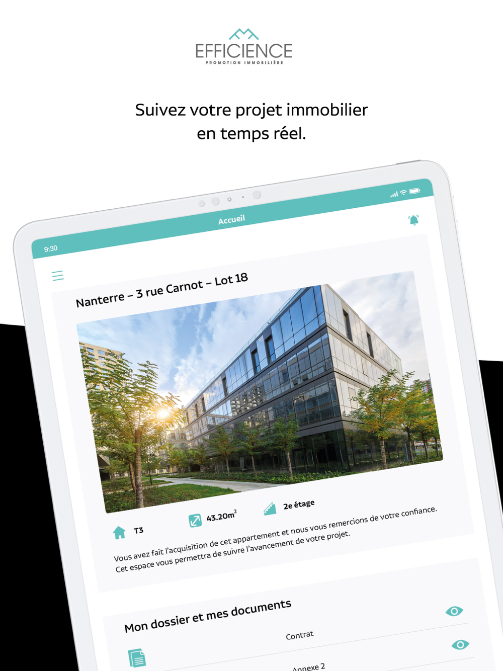 Nous mettons à disposition des acquéreurs une application afin de réinventer l’expérience client d’un achat immobilier.