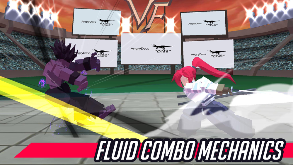 The game features block-styled cast of fighters merged with anime characters and a crossover gameplay of classic fighting games with emphasis on intuitive controls and simple art style.