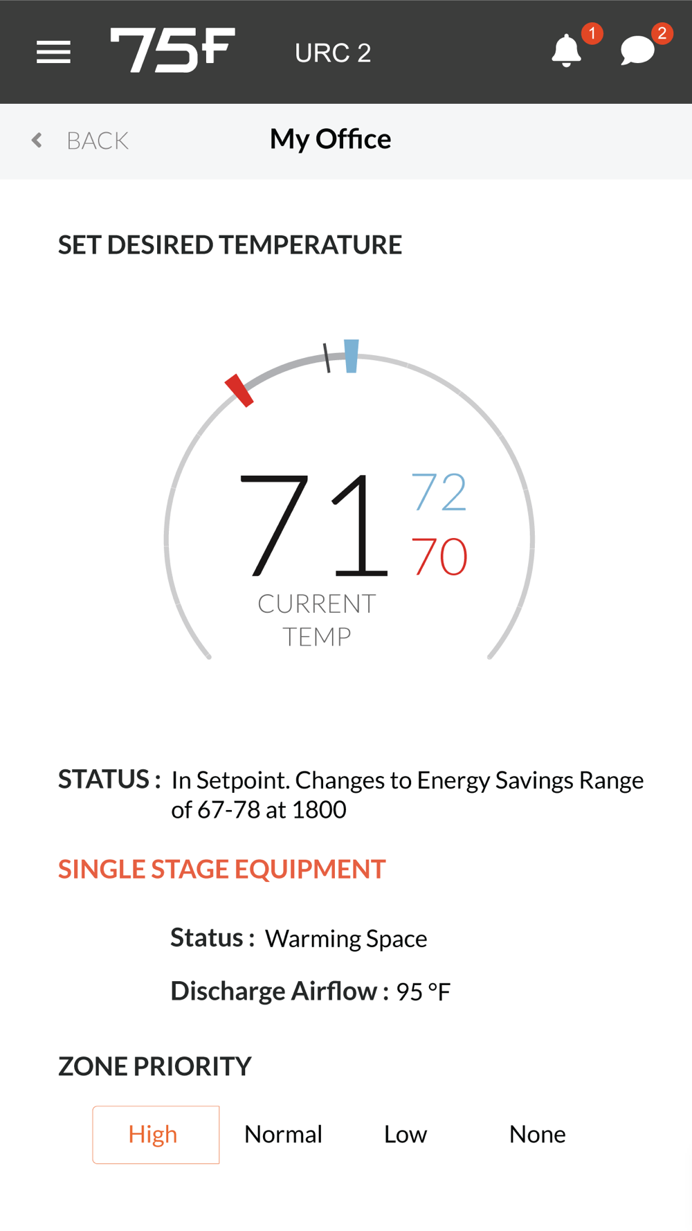 2. Adjust the desired temperature for each zone at your facility from any where in the world