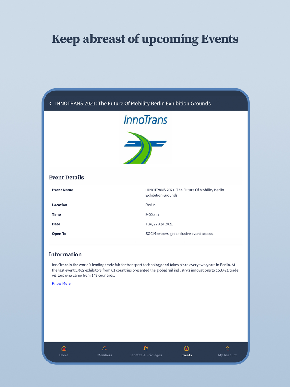 The SGC App allows Members of the Singaporean-German Chamber of Industry and Commerce to gain easy access to the Membership Directory, Privilege Card and its associated benefits, and upcoming events organised by the SGC. It also gives non-members an opportunity to have a sneak peak into the opportunities of being a member of the Chamber.
