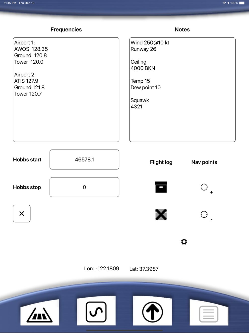 * Allows you to easily enter the location of your favorite airports and other waypoints for VFR navigation