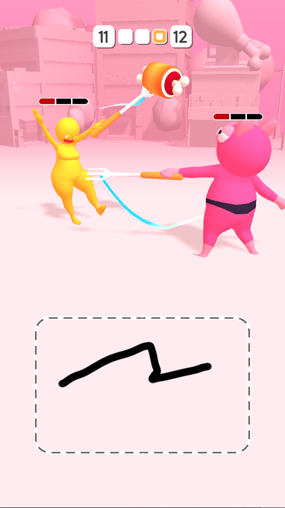 Draw to control the fork to get food and feed to the other player’s mouth (head) to make them become to fat balloon and fly up!