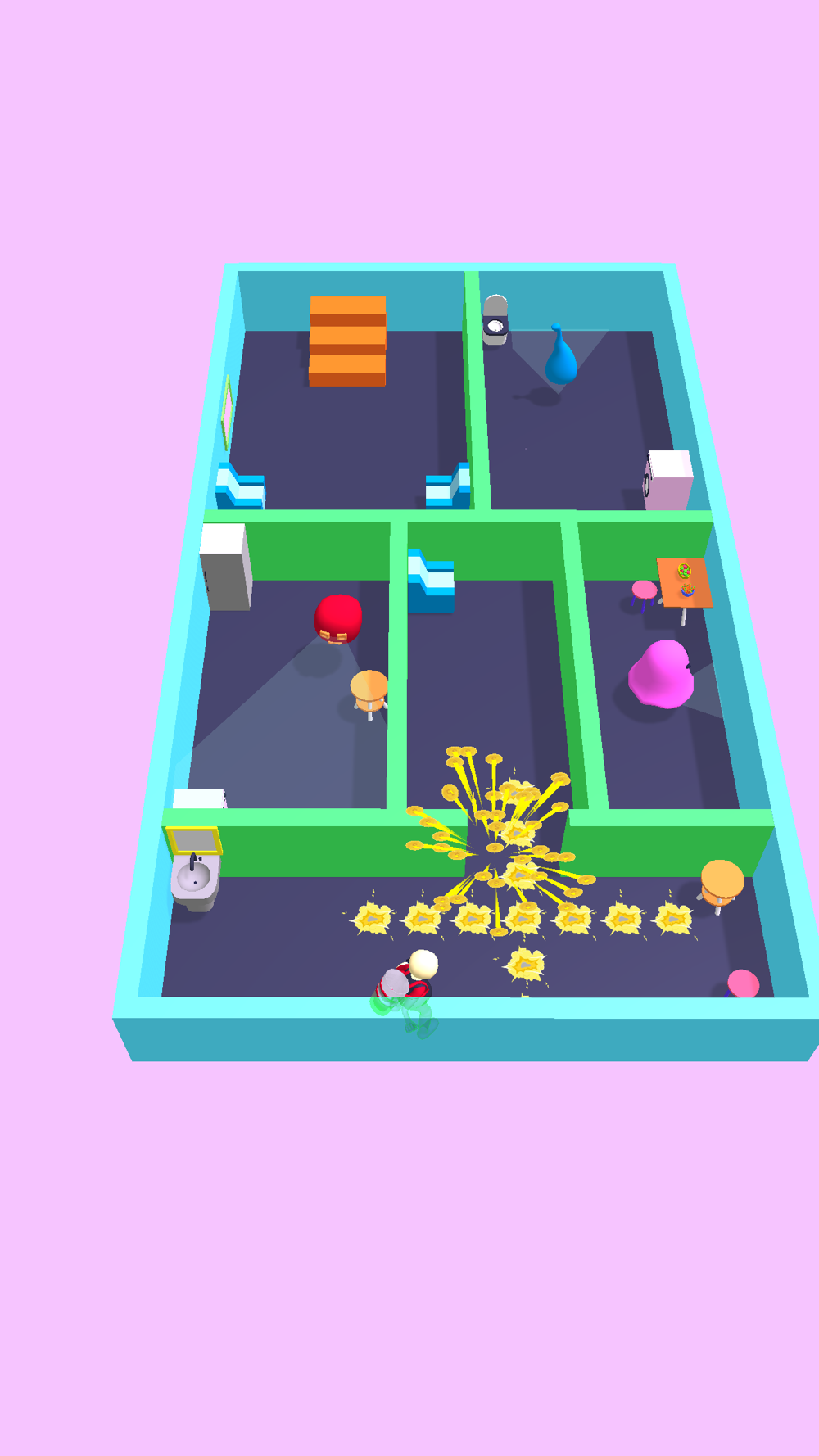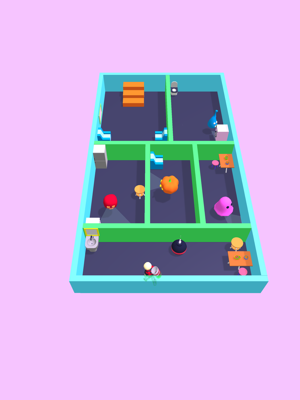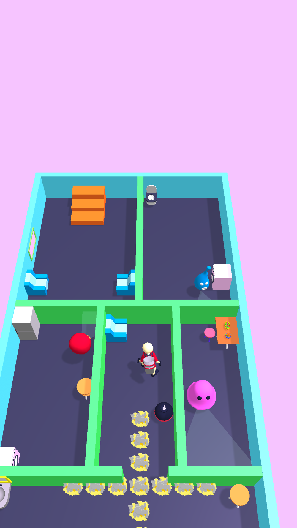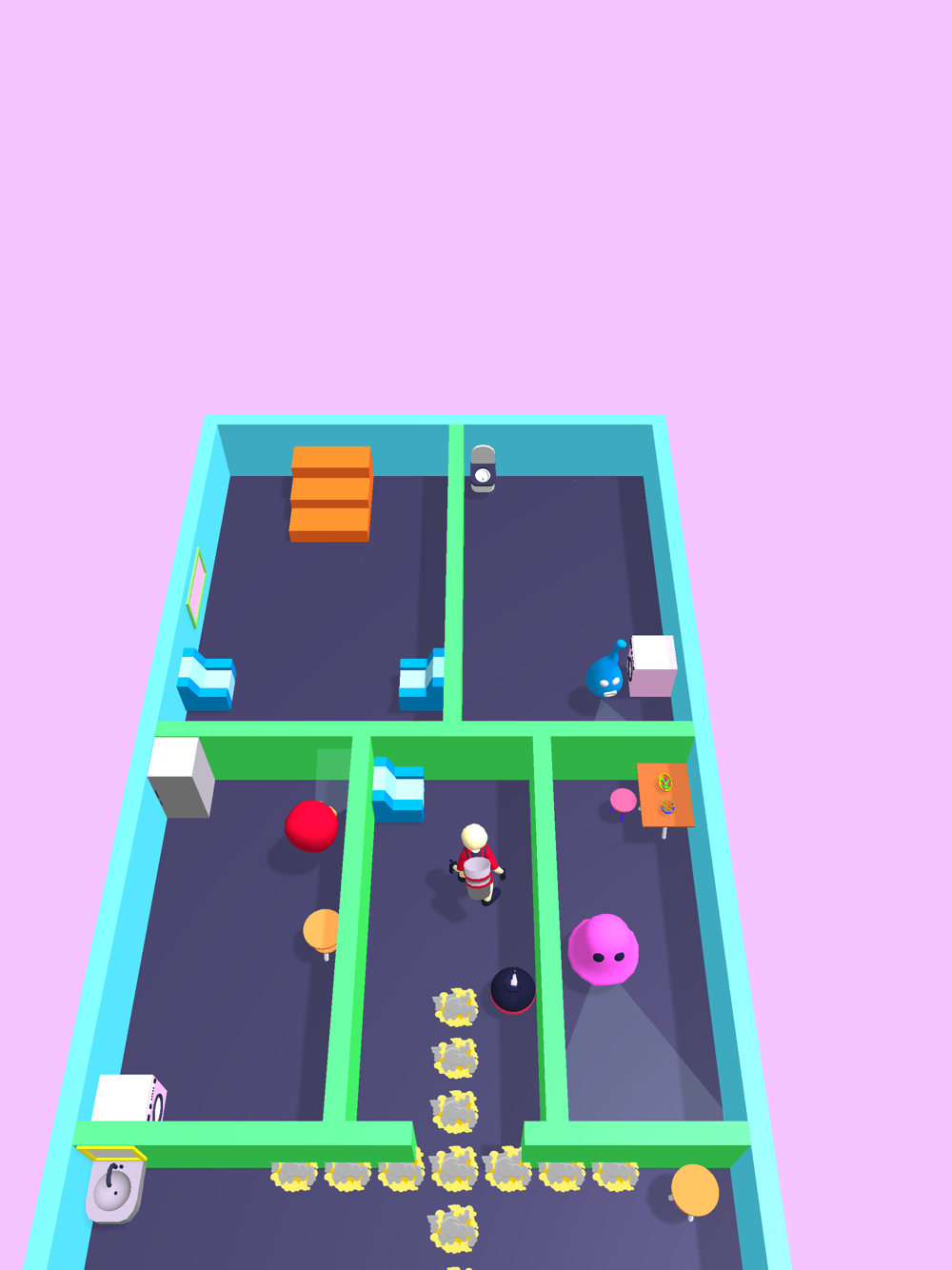 Kill all of the ghosts and reach to the stair to pass the level.