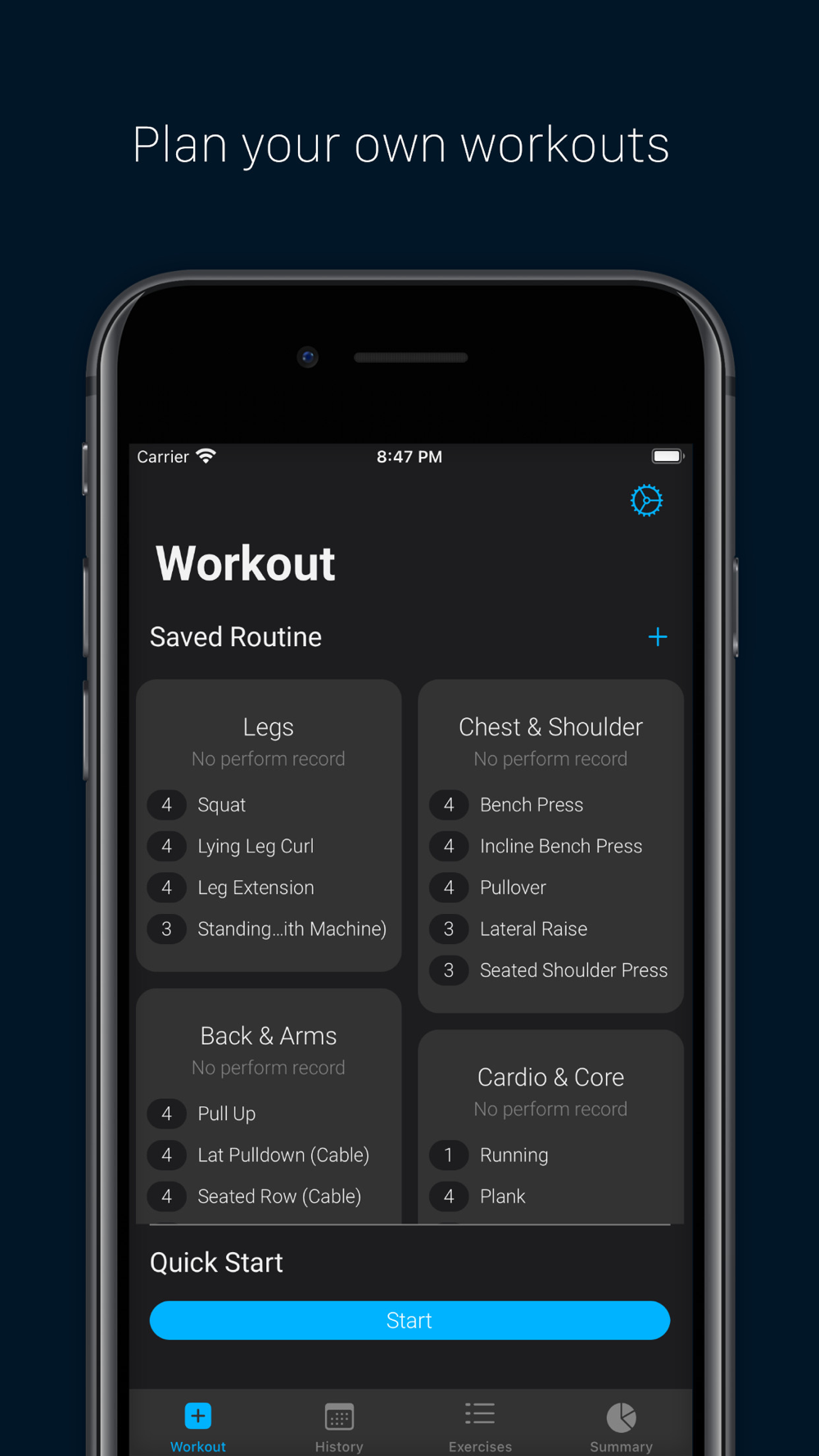 .Plan workout by saving custom routine.
