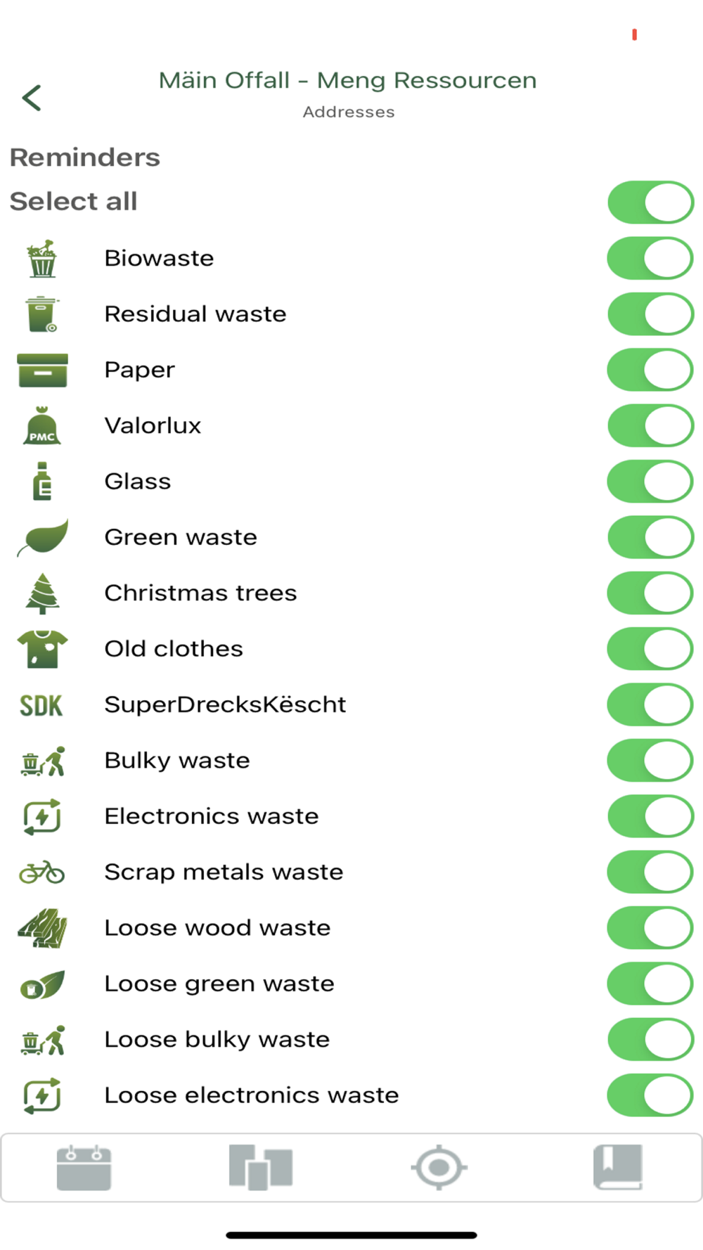 The App Mäin Offall - Meng Ressourcen, developped by the Administration of environment helps you to handle your waste management for several addresses at the same time.