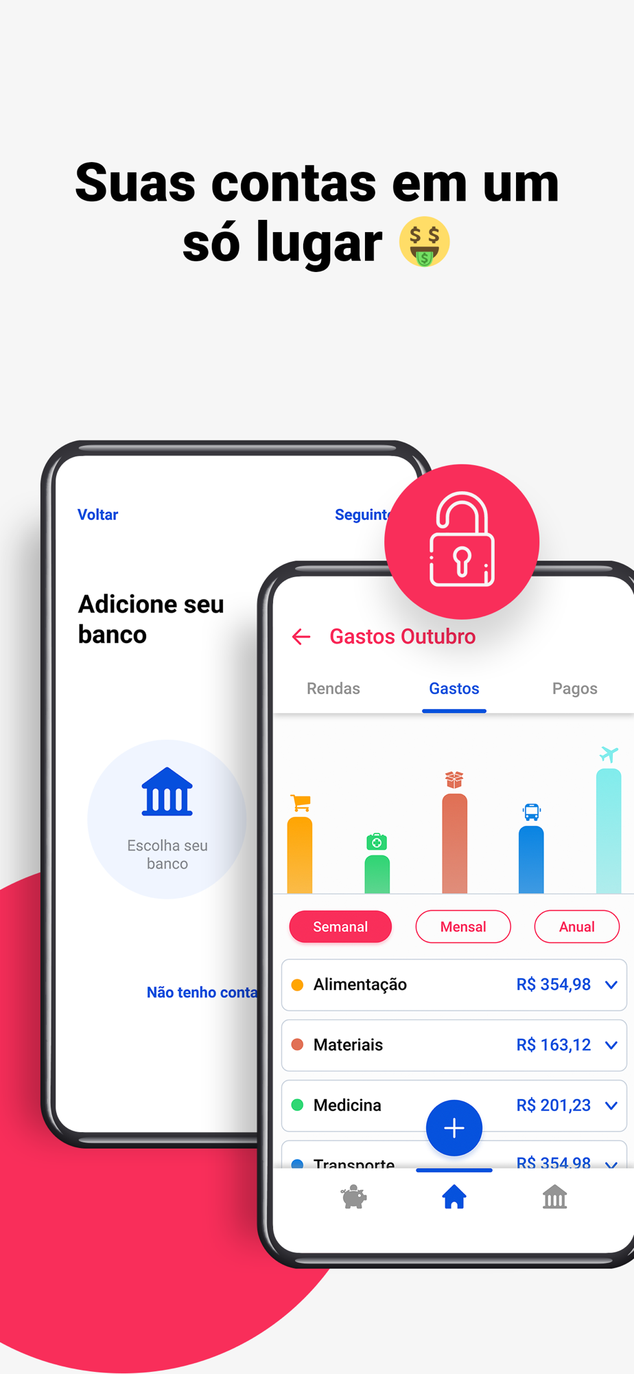 - Cadastrar suas receitas e despesas de forma fácil e imediata - e automaticamente quando você tiver uma conta bancária associado ao aplicativo.