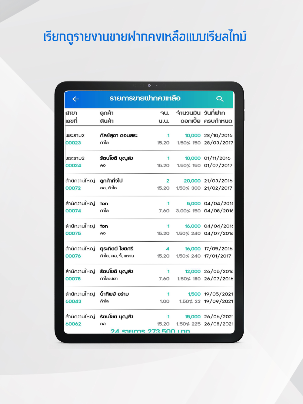 - สามารถเรียกดูยอดธุรกรรมได้ทุกที่ทุกเวลา แม้ไม่ได้เฝ้าอยู่ที่หน้าร้าน ได้อย่างรวดเร็ว เช่น