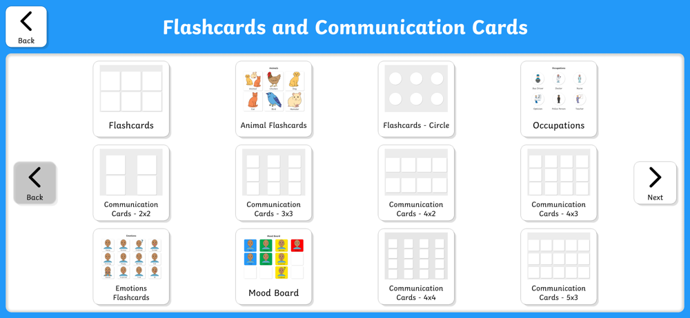 > Communication Cards - 2x2, 3x3, 4x2, 4x3, 4x4, 5x3, 5x4, 6x3, 6x4, 7x3, 7x4, 7x5, 8x3, 8x4, 8x5
