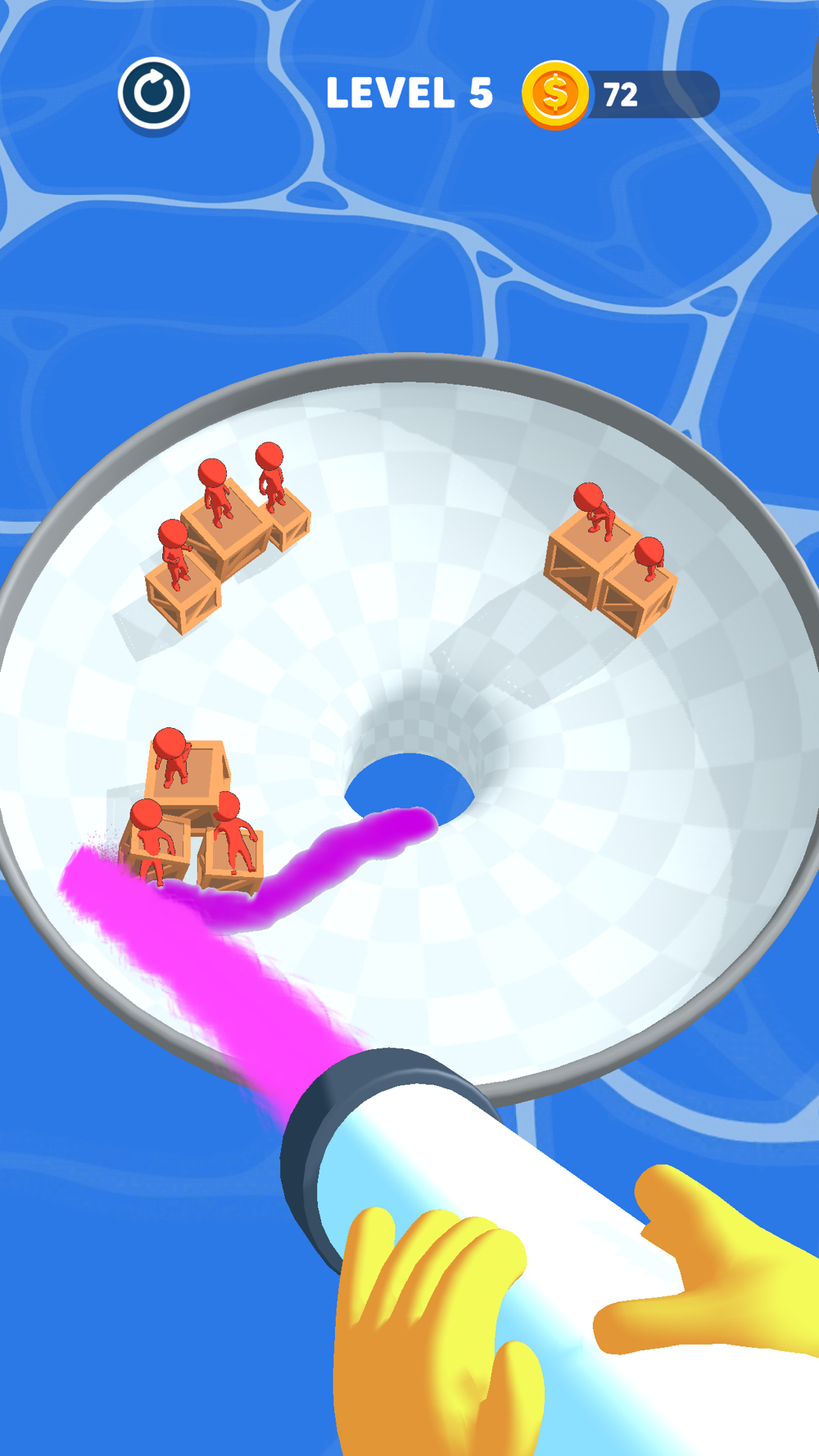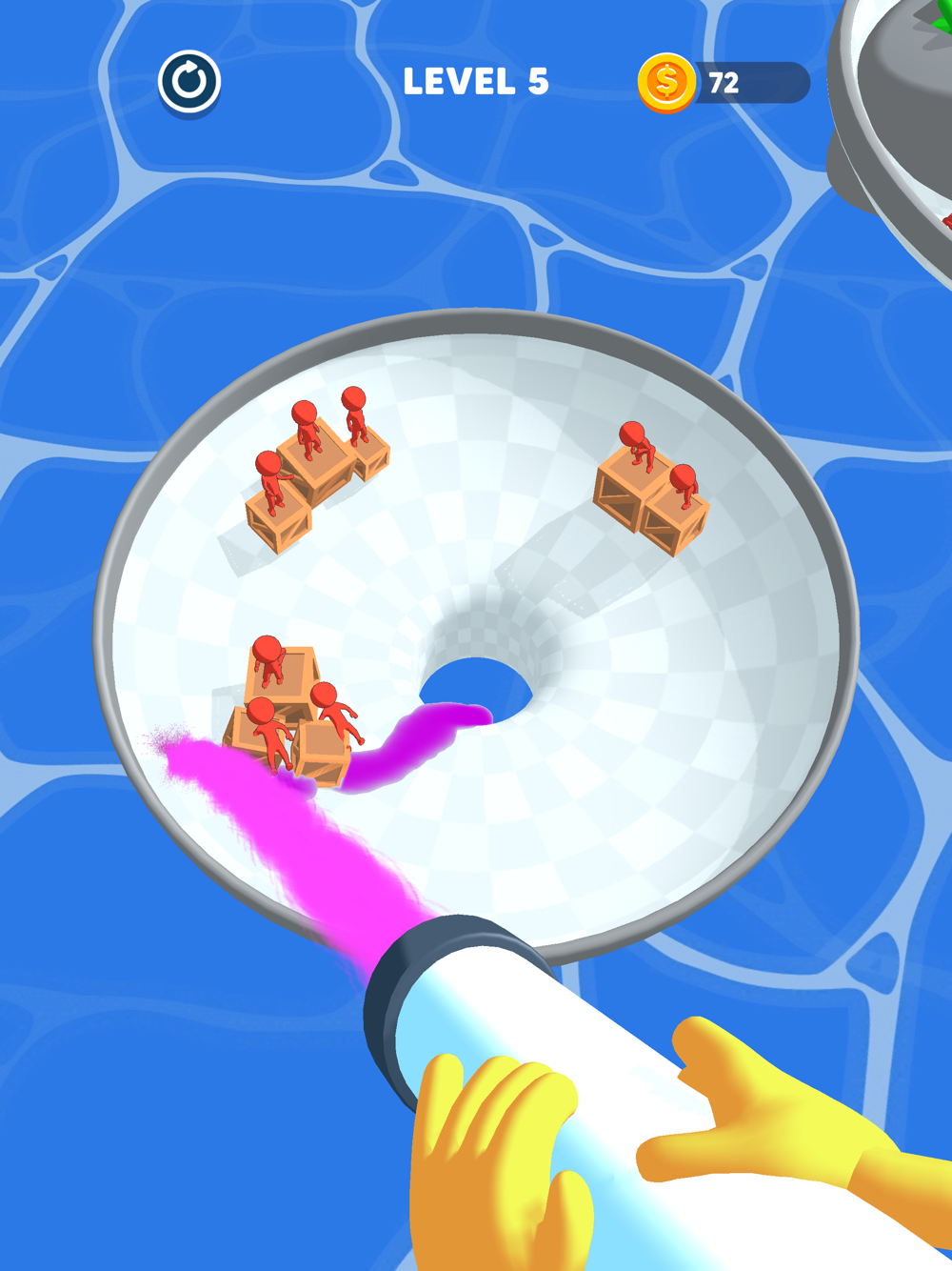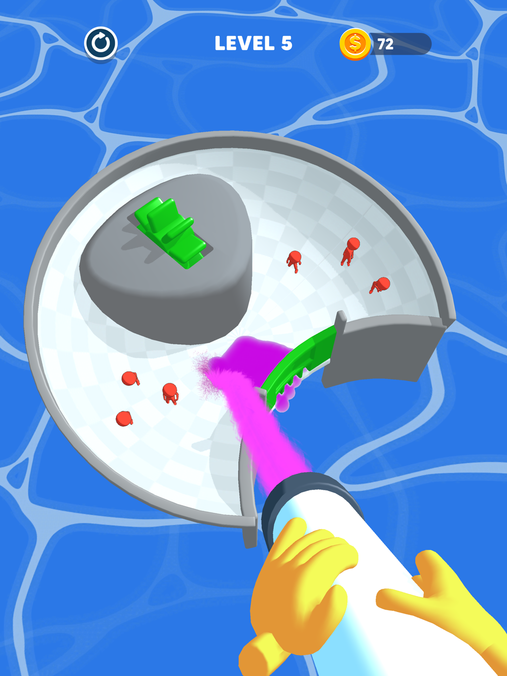 Use your water jet to get rid of all the opponents and clean the arenas.