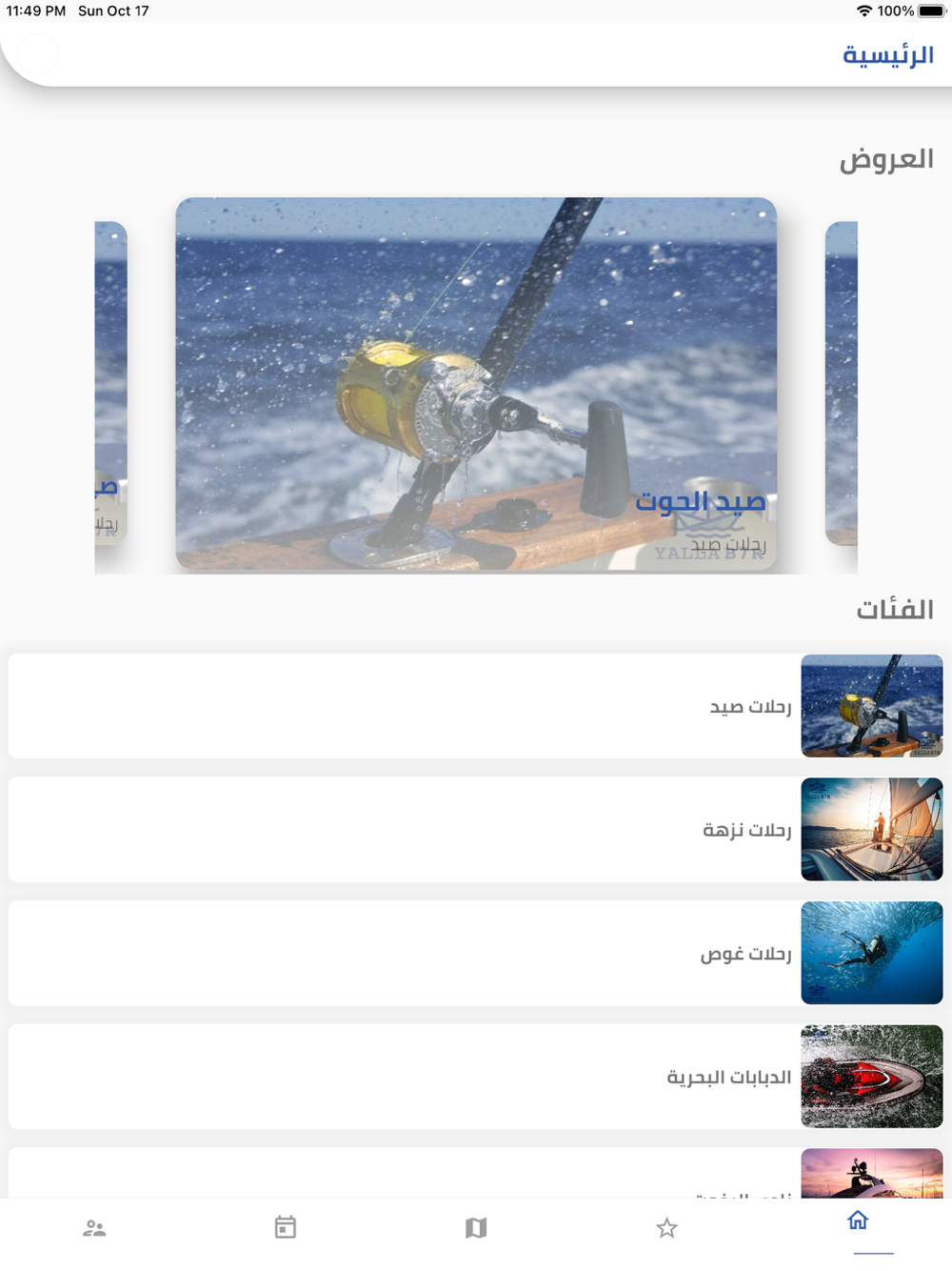 تطبيق محبين البحر و الرحلات البحرية و رحلات الصيد و رحلات الغوص والدبابات البحرية ونادي اليخوت والصيد الرياضي ورحلات الجزر و الاستجمام لحجز الرحلات عن طريق الدفع الإلكتروني المباشر
