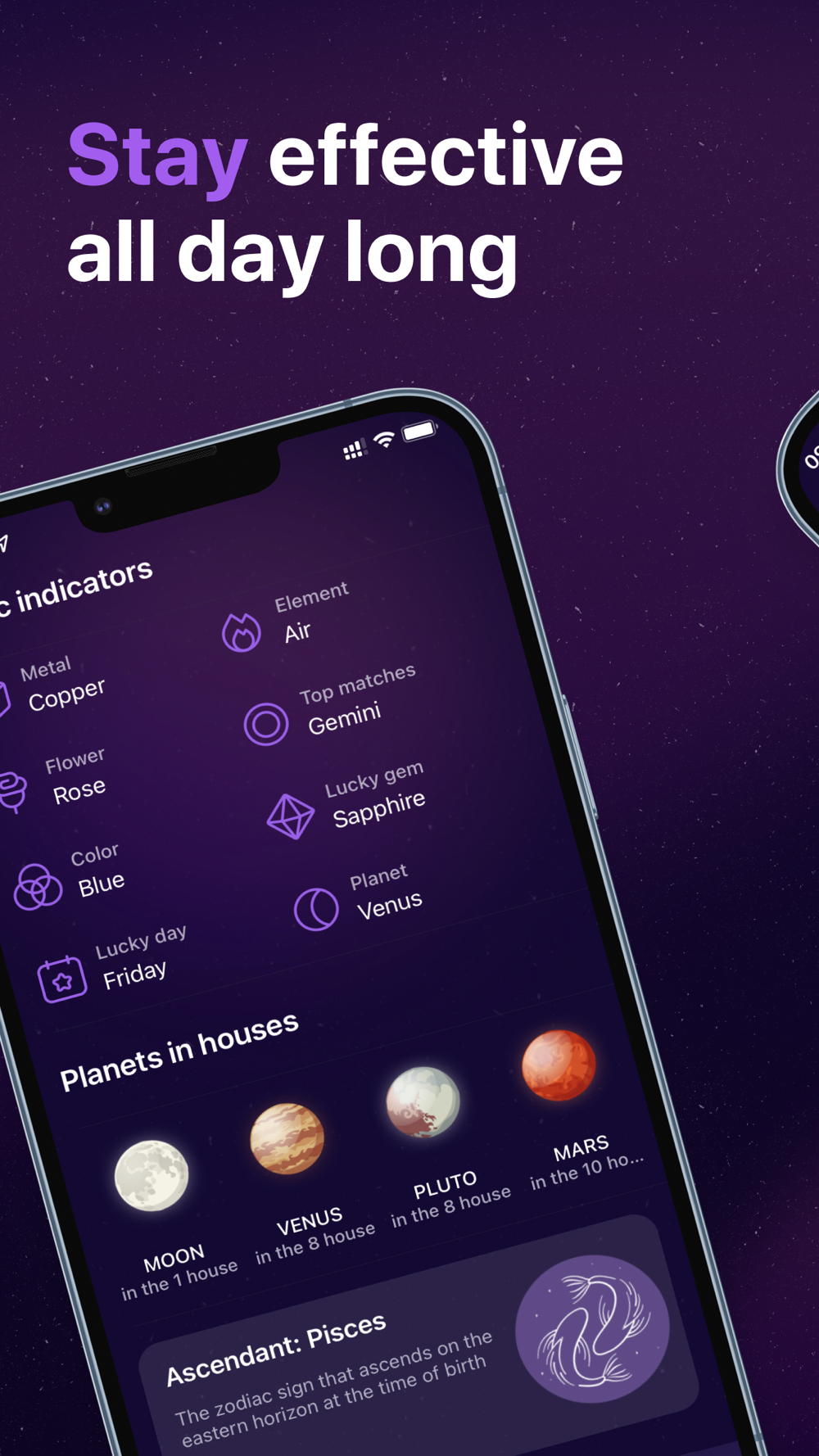With Astro, you can get to know your true self: find out what the future holds for you, learn about your perfect match in love life and friendship, as well as to get your body in great shape with workouts! Do you know your lucky gem, your perfect color, metal, flower, element, and planet? And what about your daily biorhythms? Are you aware of your lucky days? If your answer is 'no', worry not, the app has all the answers!