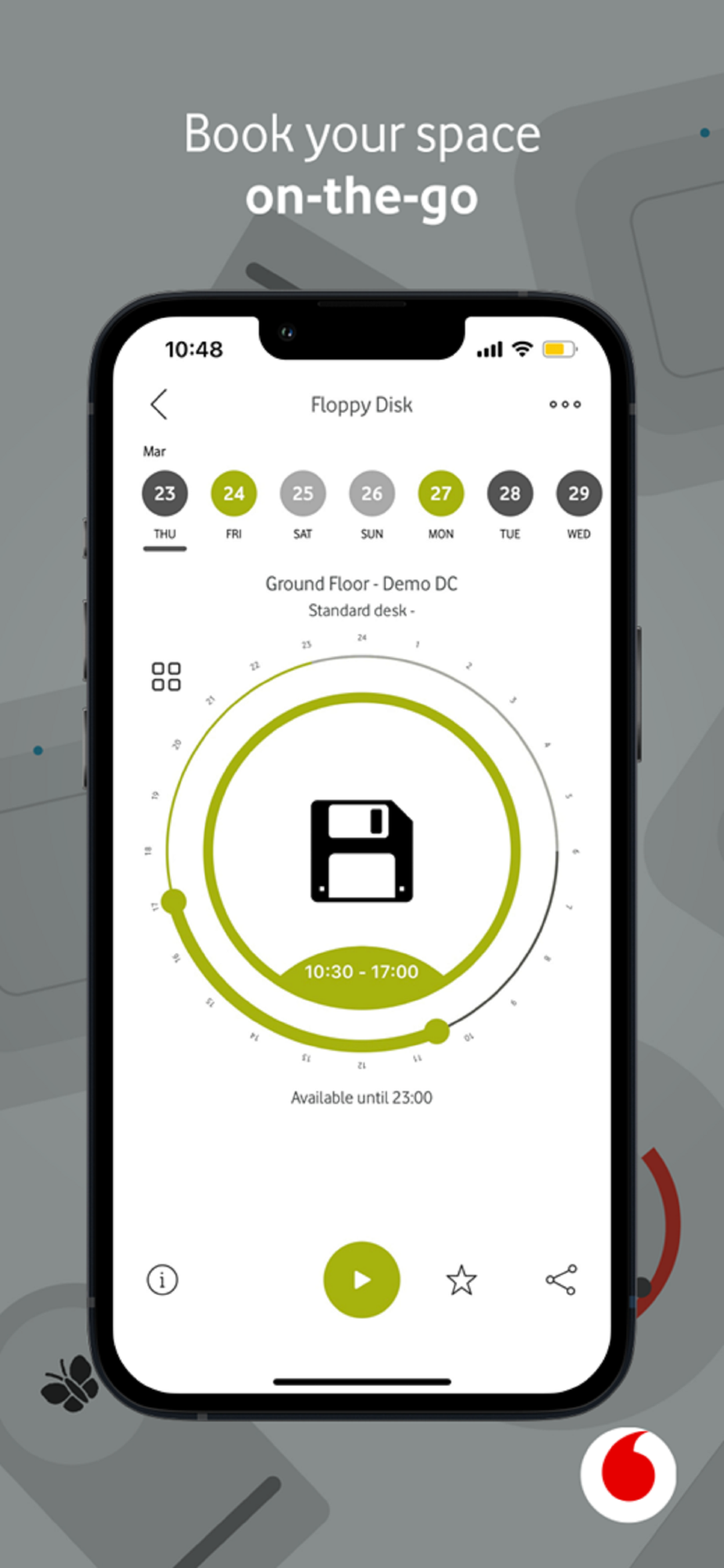 The Vodafone Business Office Spaces user app allows employees to manage and book spaces easily.