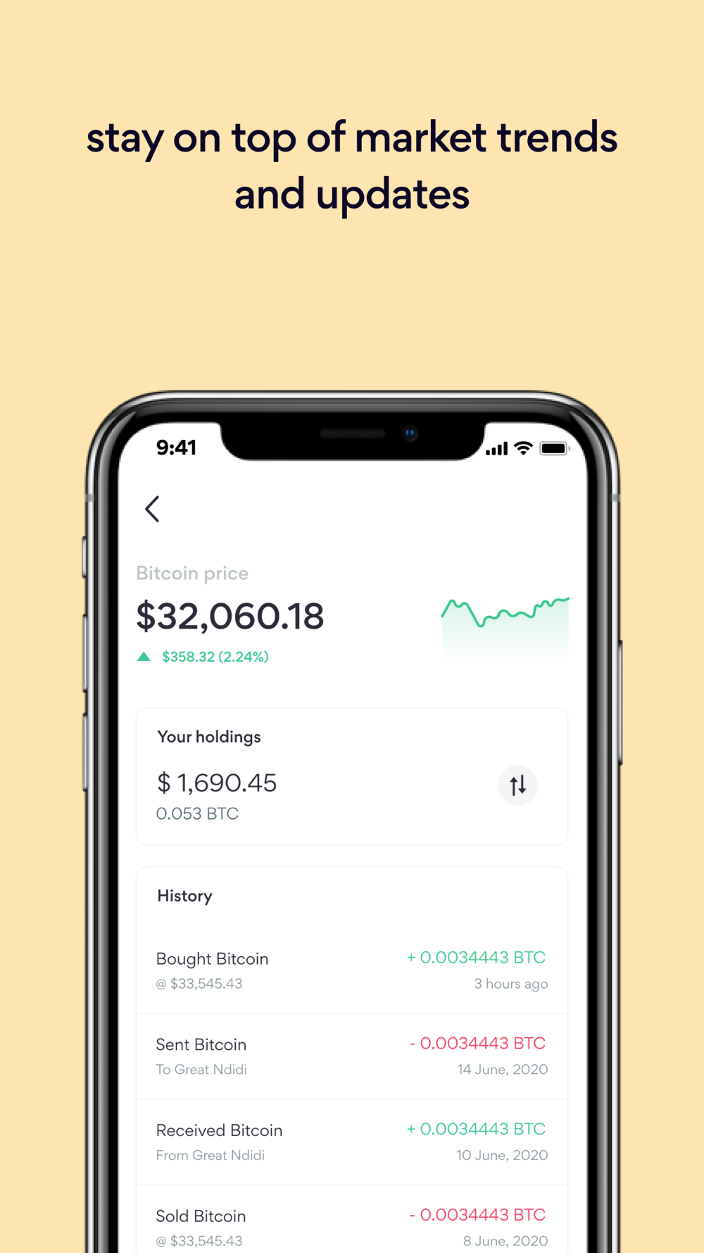 You can send and receive your Bitcoin from any platform instantly, or save securely in your Yellow Card wallet until you’re ready to withdraw.