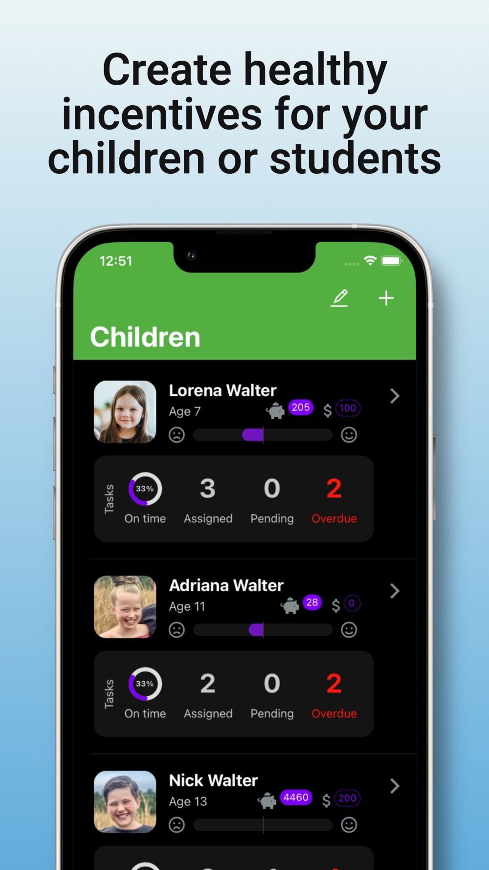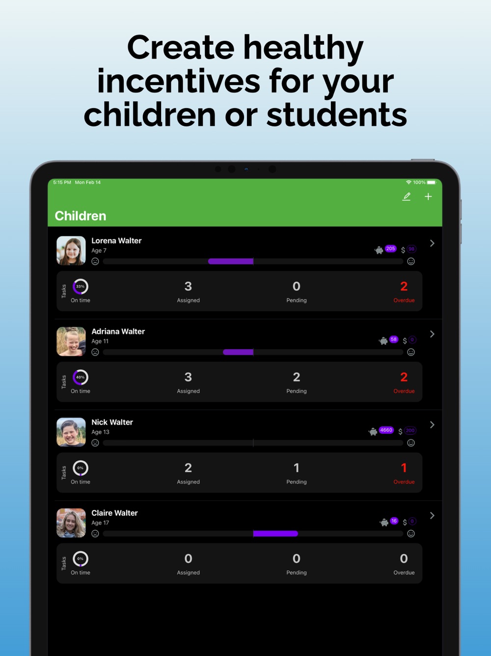 - Share your account with another adult to manage the same children, tasks, rewards, and notifications. One solution for your whole family.