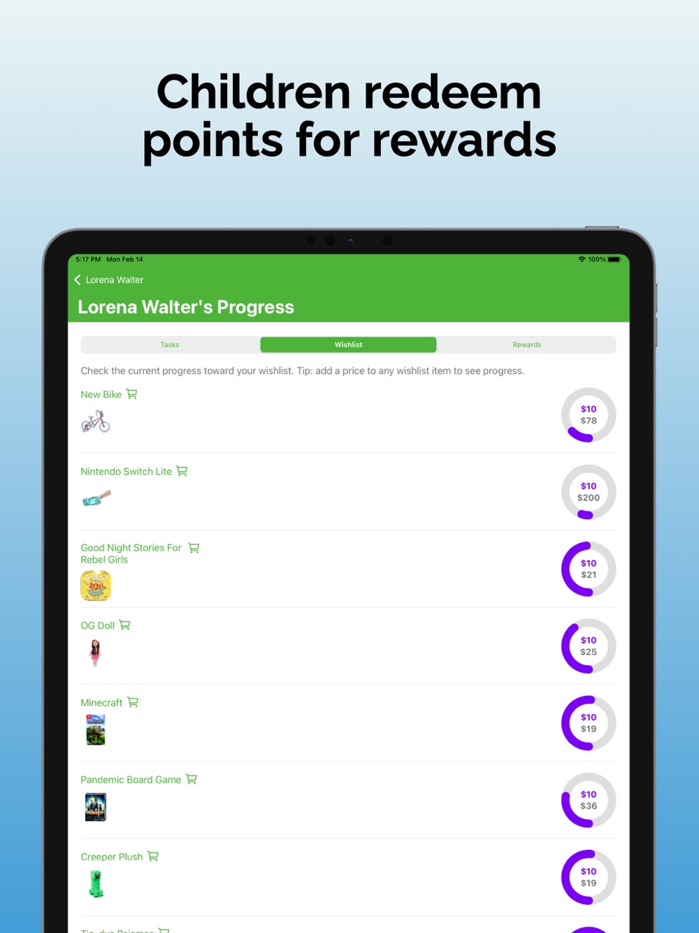 - Children can check their point balance and redeem points for rewards they want (with parental approval).