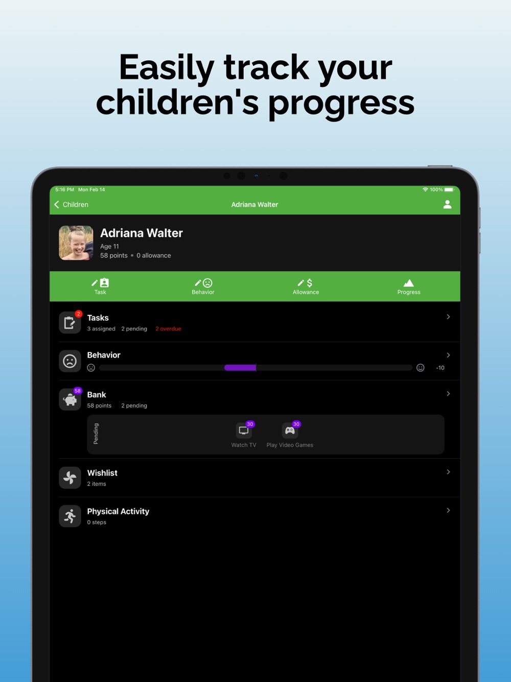- Provide incentives for physical activity. Fitbit integration automatically earns your children points for steps.