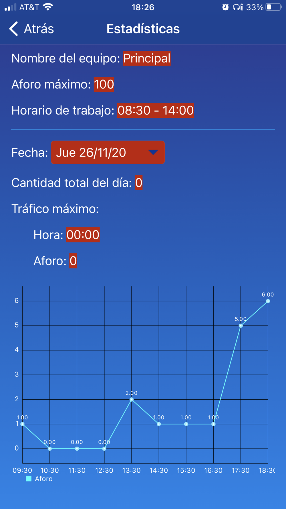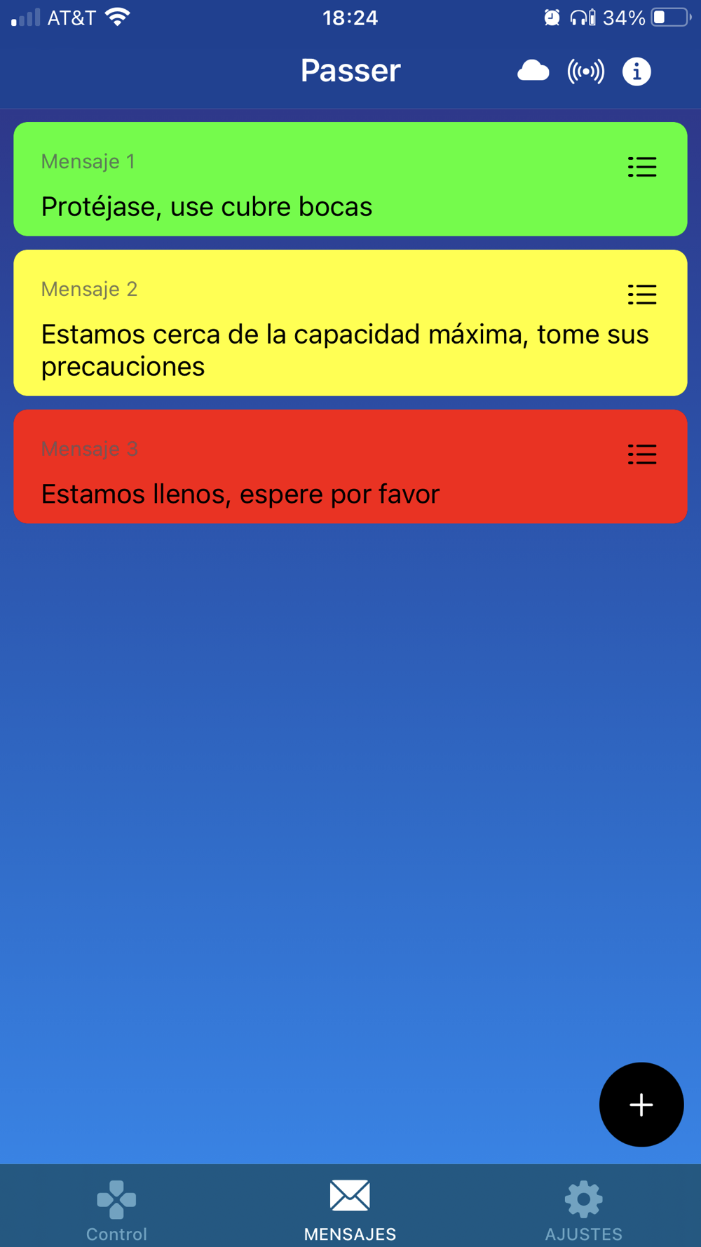 Con esta aplicación el usuario será capaz de controlar el aforamiento en un lugar de forma directa o través de la nube.