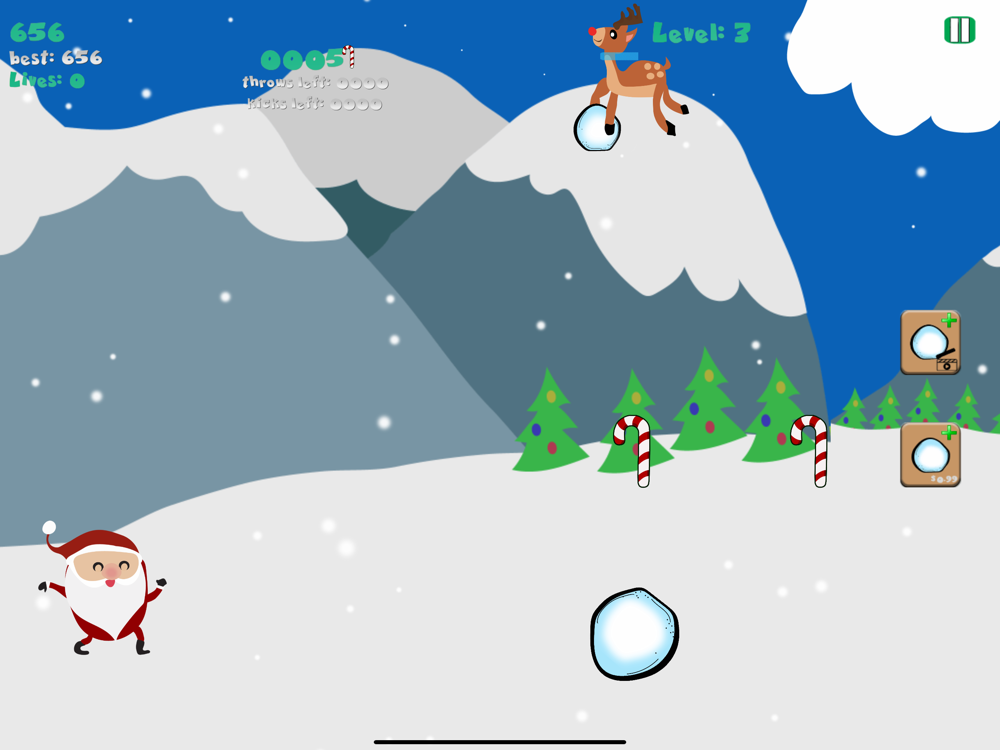 Follow Santa or Elf run, jump and race on his many adventures thru the North Pole avoiding hurled snowballs, presents and other obstacles. Along the way learn how to better interact with devices, build dexterity and counting skills by counting along with Santa with voice cues.