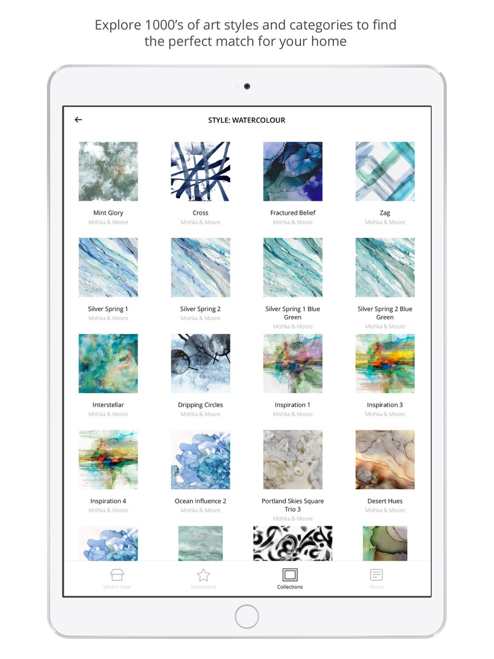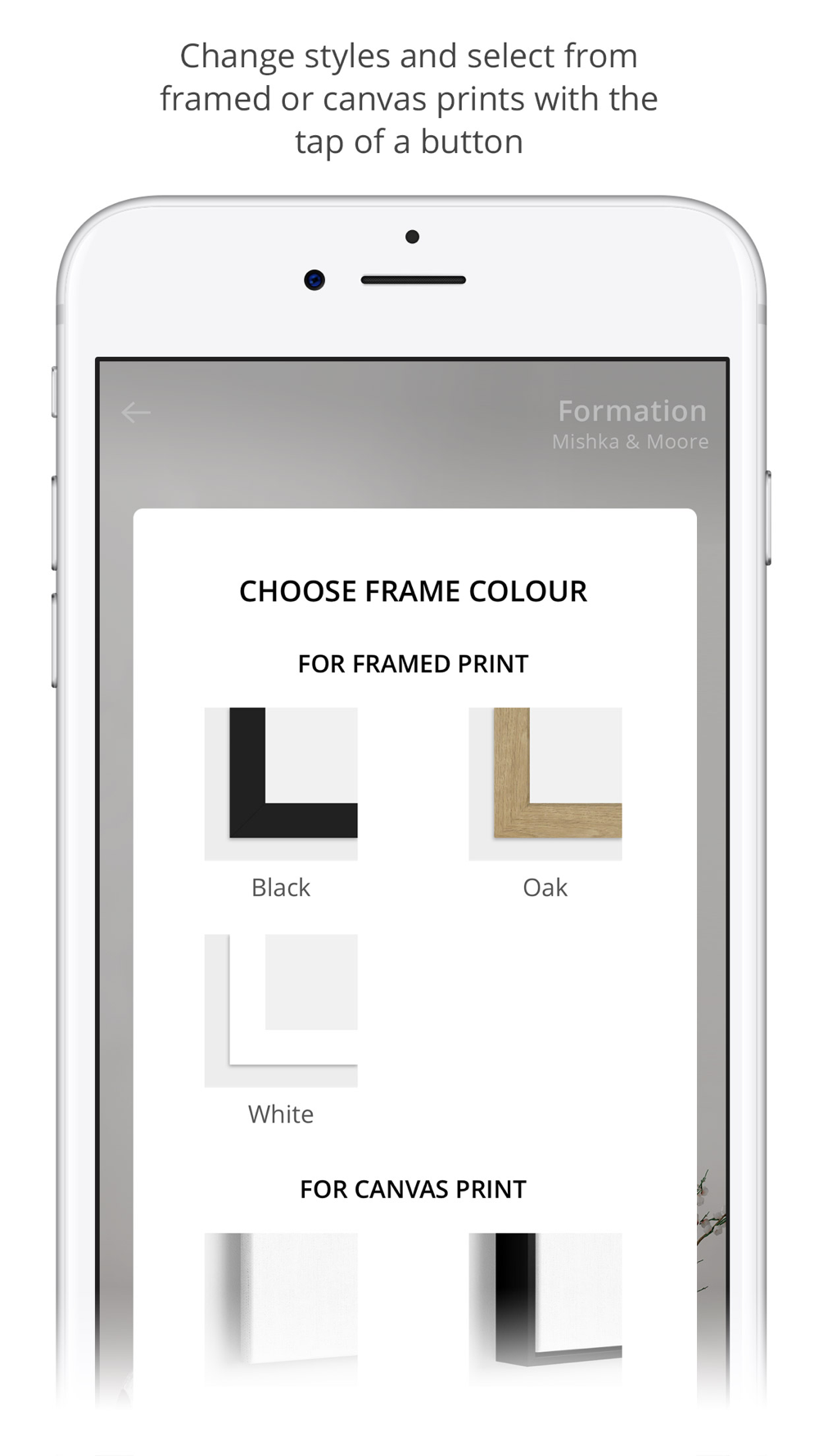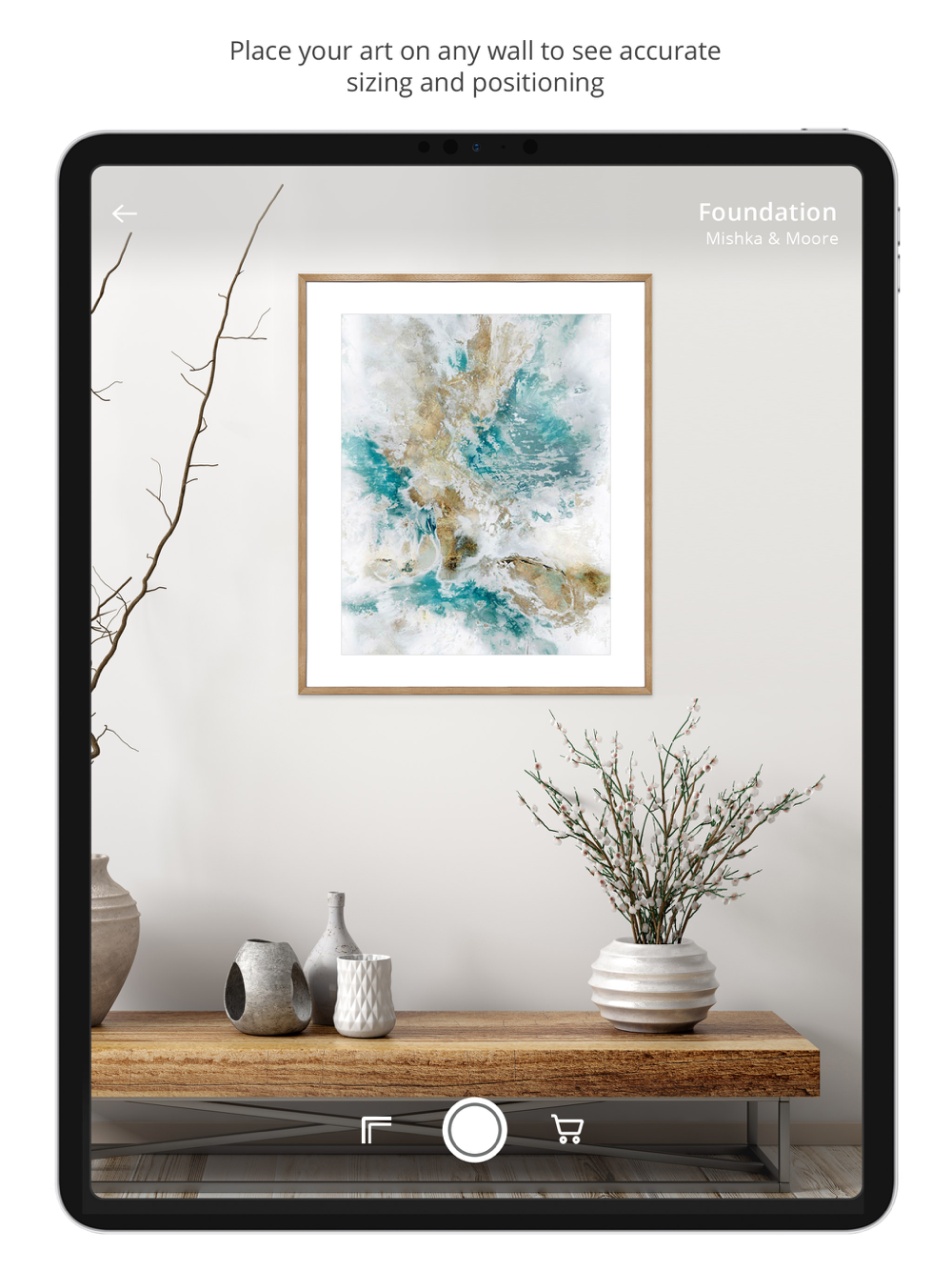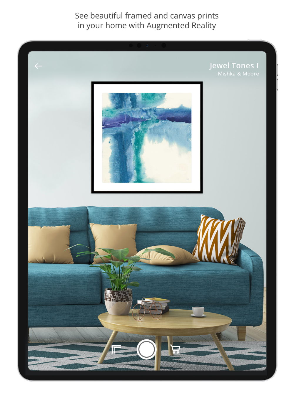 Mishka & Moore now make it possible to view a huge range of gorgeous, quality art on your own wall in your own home. Using the latest technology we have created a 3D Augmented Reality (AR) App that enables you to preview a piece of art to see how it looks hanging on your wall, in your environment, together with your décor. So now, from the luxury of your own home, you can choose, resize, try different frame colour options, before seamlessly clicking through to the website to purchase the item.