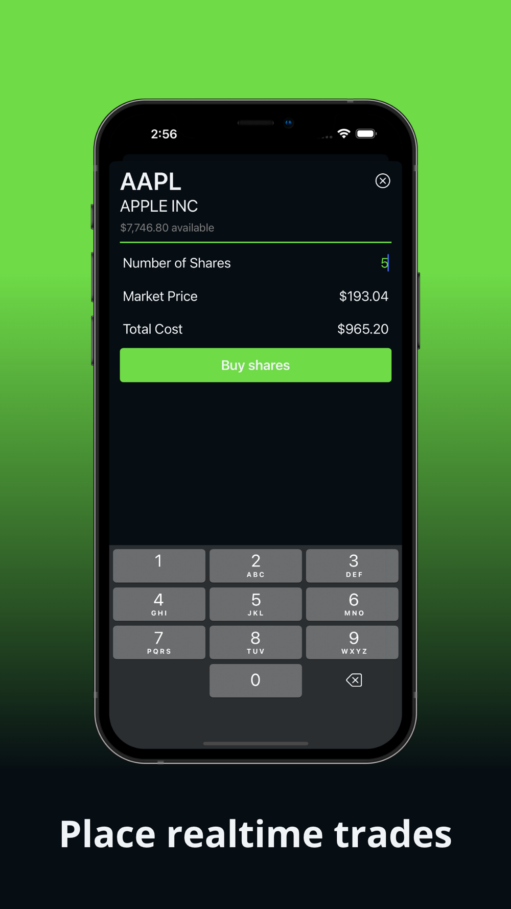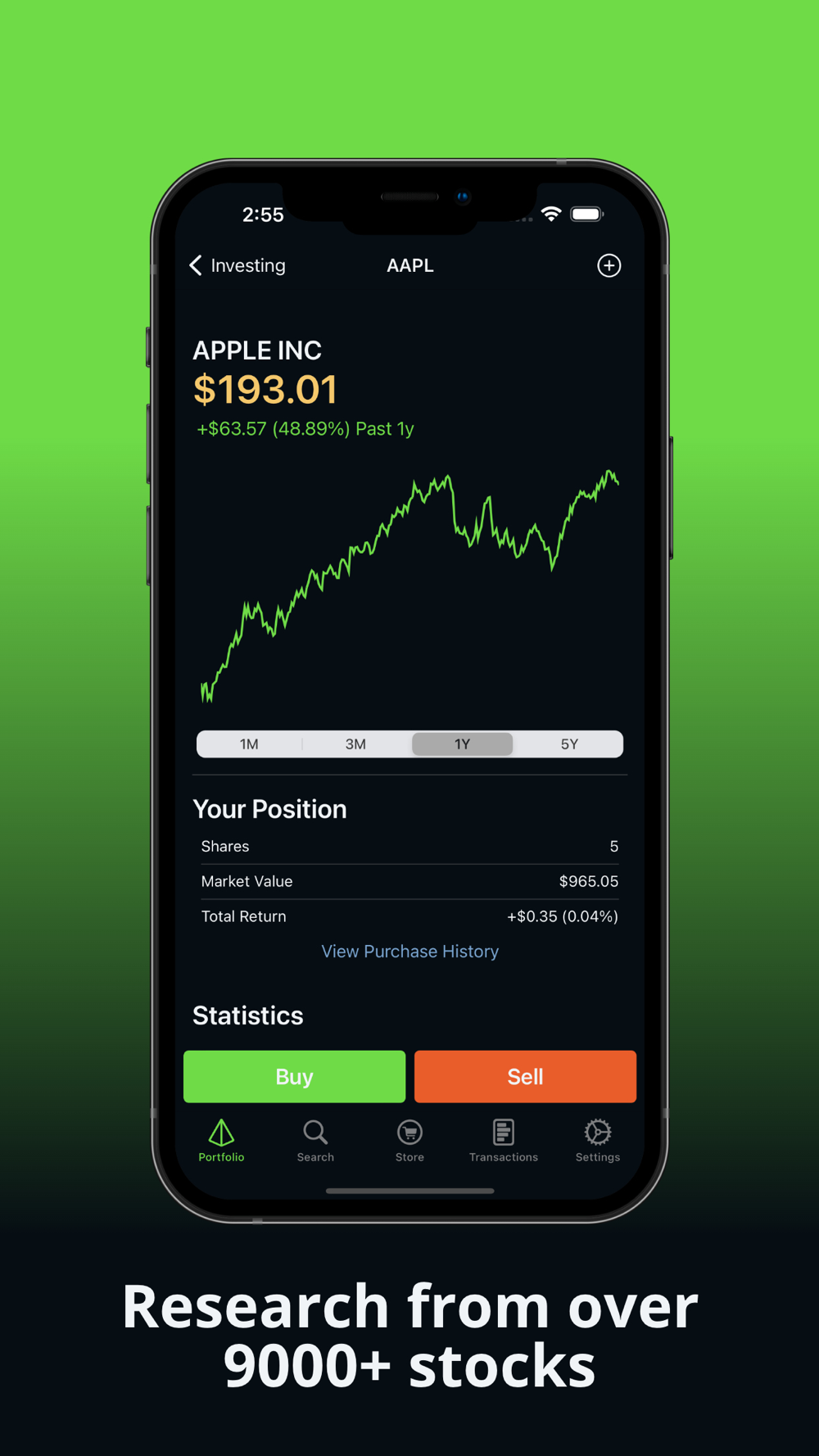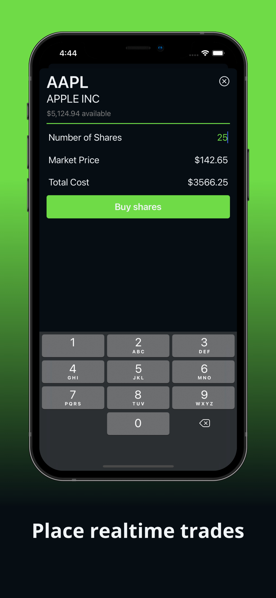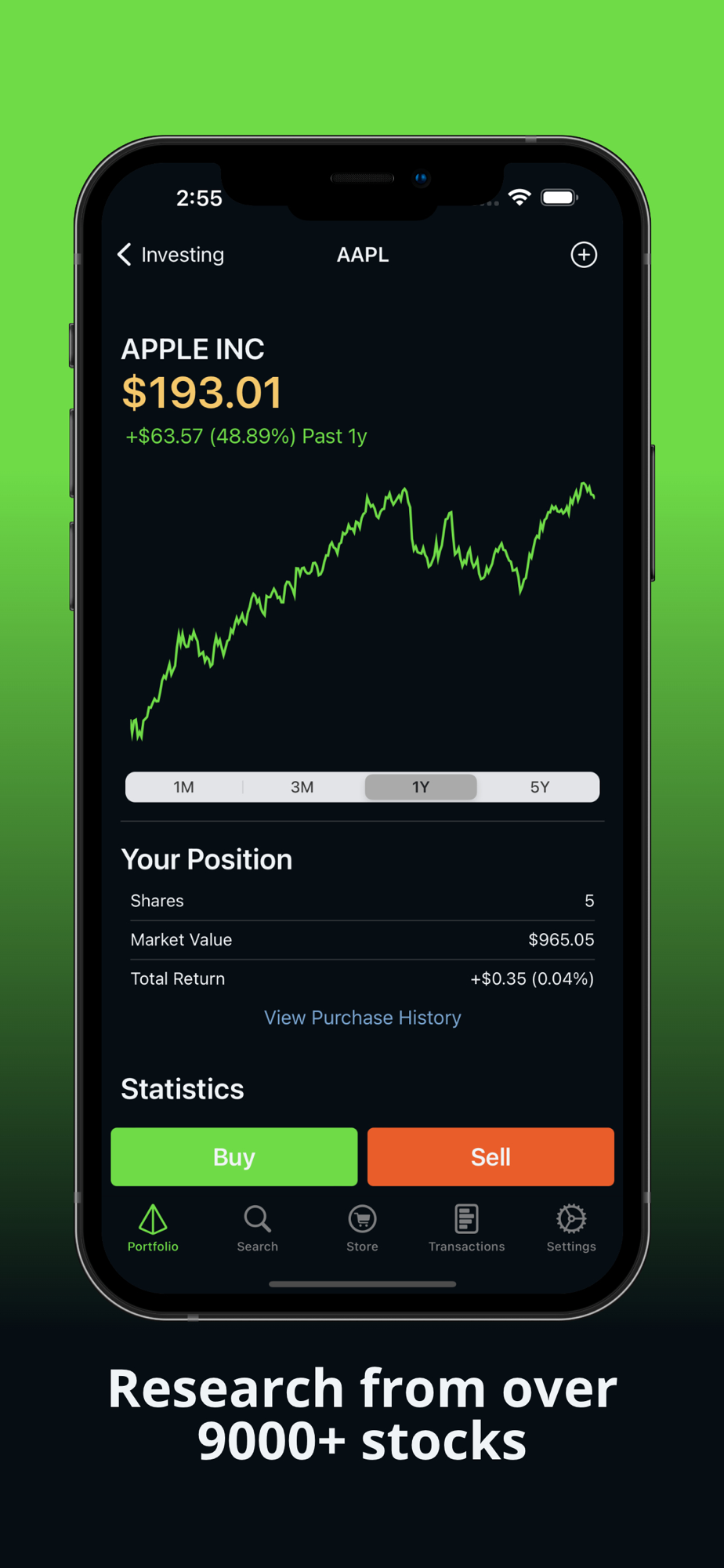 All new users start out with $10,000 and have the option to buy and sell from over 9000+ Stocks, ETFs, etc.