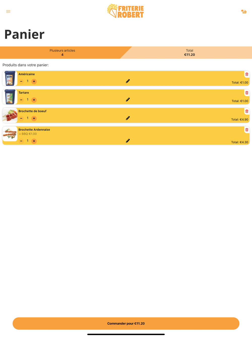 Où que vous soyez, avec l'application de Friterie Robert, vous pouvez commander sans souci parmi la vaste gamme de frites, snacks, brochettes, ...