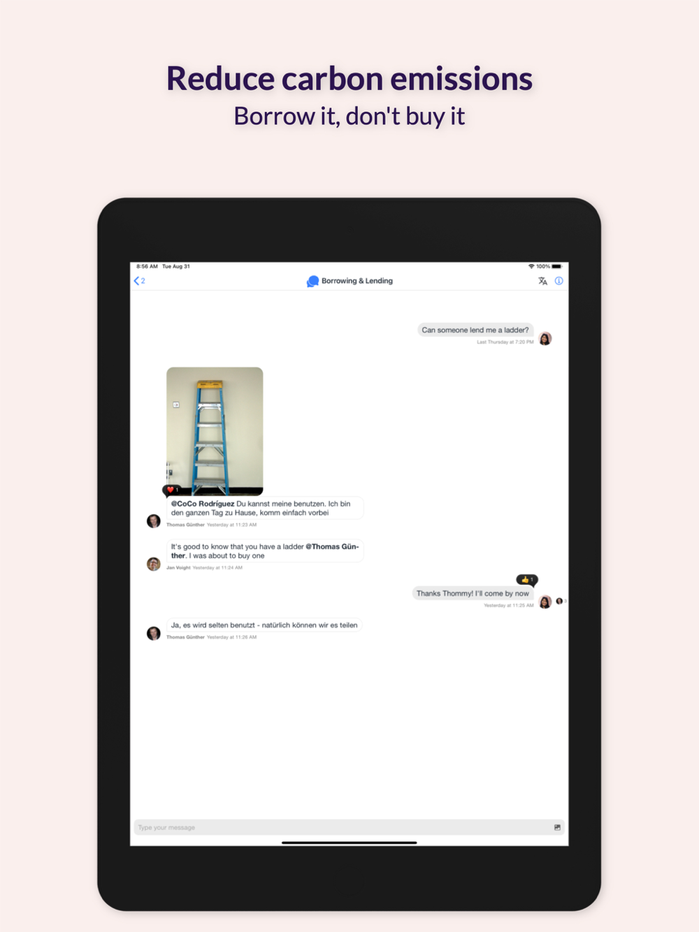 Our mission is to make urban life sustainable. By connecting people who live together we can make our lives a little bit more sustainable by: