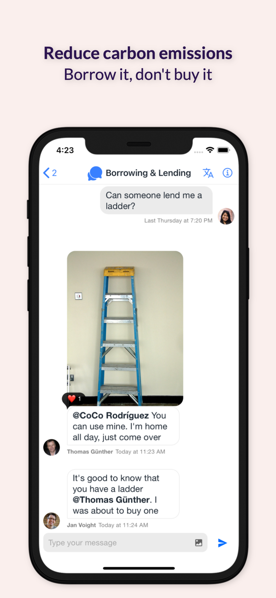 Asking to borrow something instead of buying it reduces emissions and saves you money and space at home