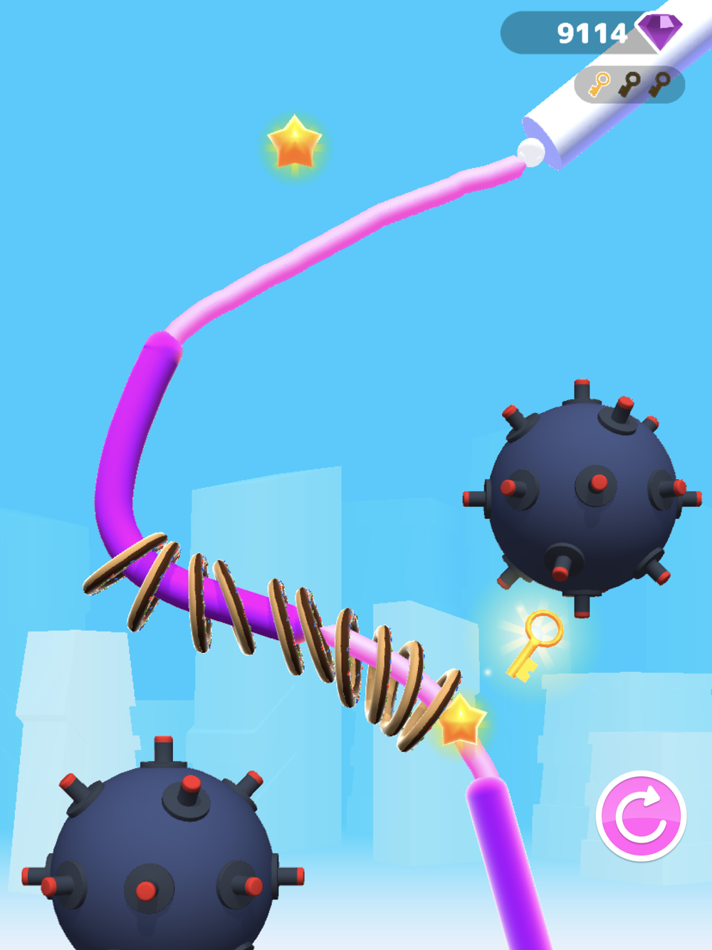 Playing is easy! Just touch the screen and drag your finger to draw a path for the hoops. Try not to loose a single object. The game features a tricky puzzle where you have to think carefully to beat the level.