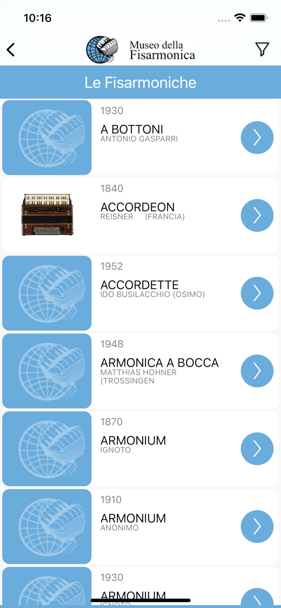 You will be able to listen to unreleased audio of some accordions, view digital reconstructions with 360 ° photos, discover more detailed information such as year, manufacturer, nationality and much more.