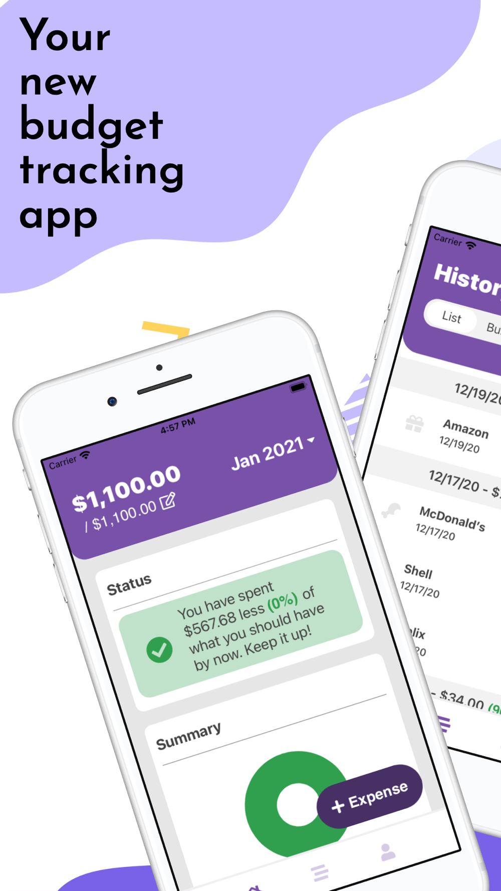 With Bdgt we provide a detailed daily breakdown, monthly summary, and weekly or monthly push notifications to remind you to keep logging those expenses. Daily totals will help you stay on track, and the status section will let you know how far off or on target you are for the current month.