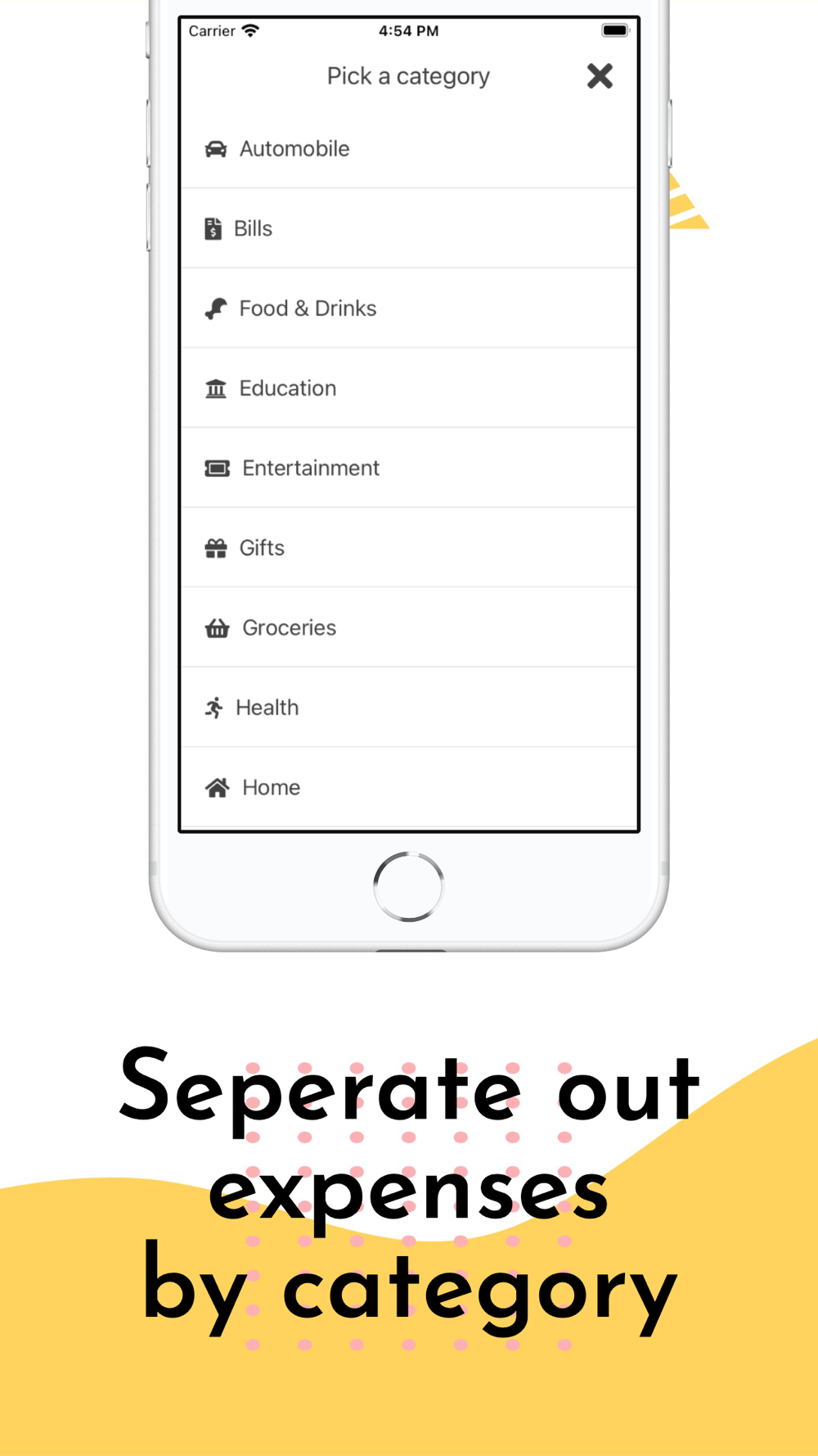 Separating out expenses into different categories is a breeze, when logging your expense simply select the category. If you mess up it is just as easy to change the category from the detail view. There are many categories to choose from, if you find that there is a category lacking please feel free to let us know and we can get it added.