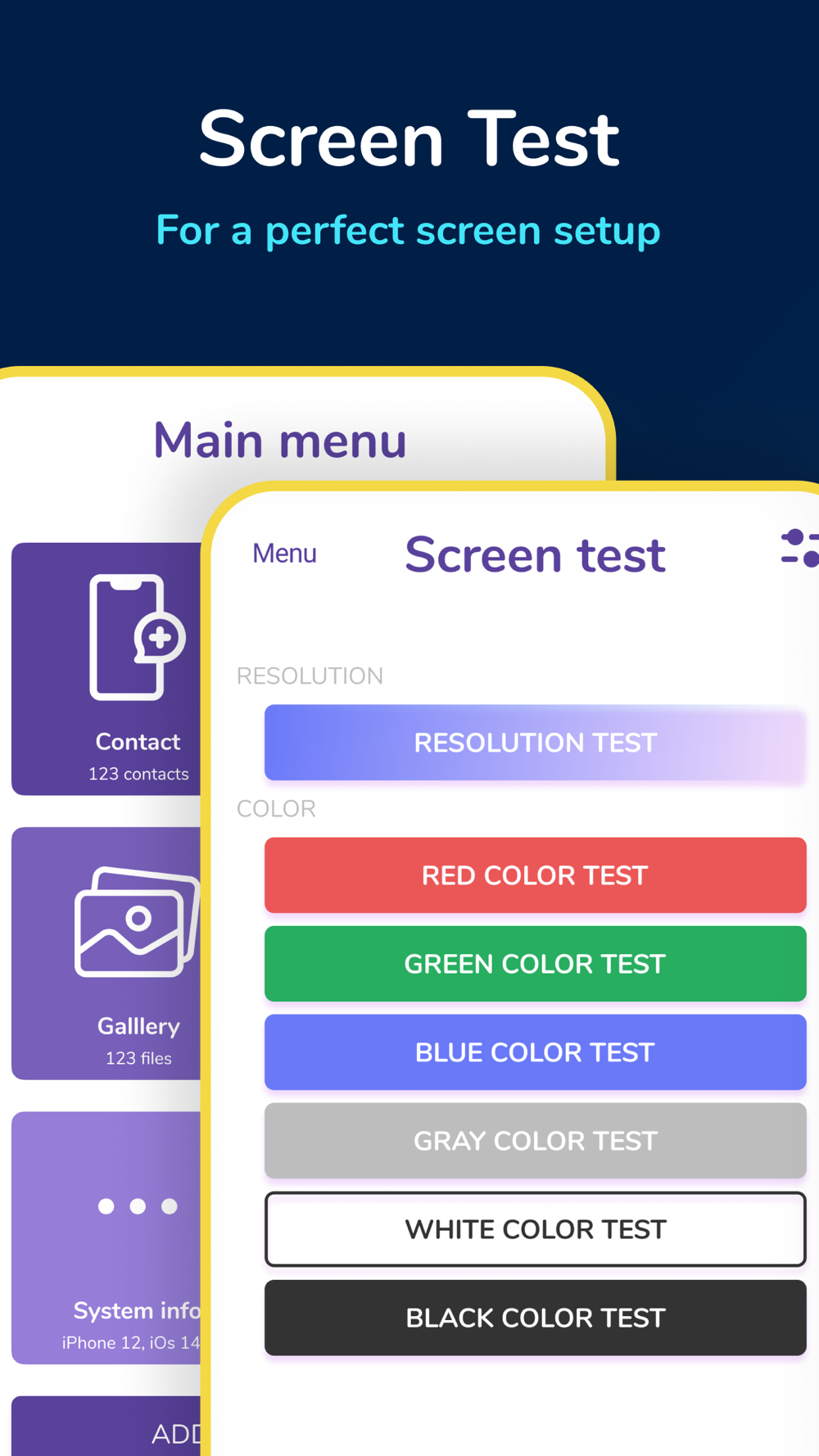 Screen Test - Check your device's screen for defects or dead pixels. This utility will help you test your device.