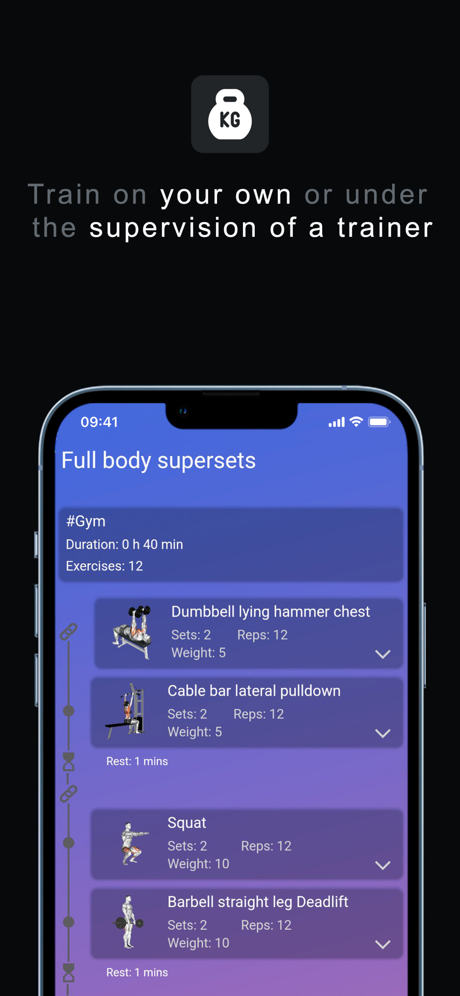 Create a workout plan with your personal trainer, list your personal exercise library and train at home or at the gym.