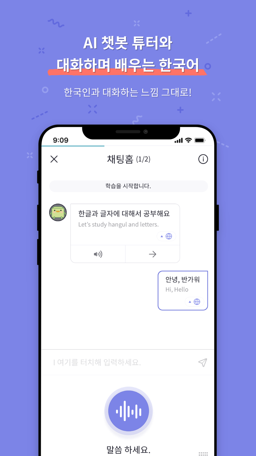 1. AI 챗봇튜터와 실시간으로 대화하며 배우는 한국어!