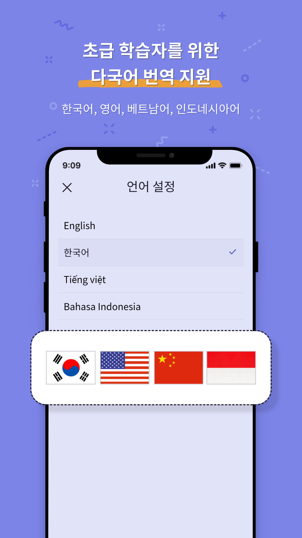 5. 초급 사용자를 위한 다국어 번역 지원 (영어, 베트남어, 인도네시아어)