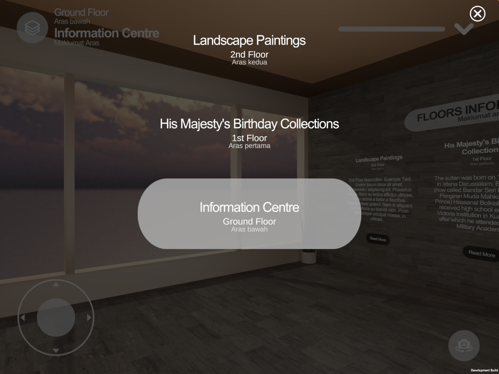 • Walk and look around in the 3D space to explore the gallery.
