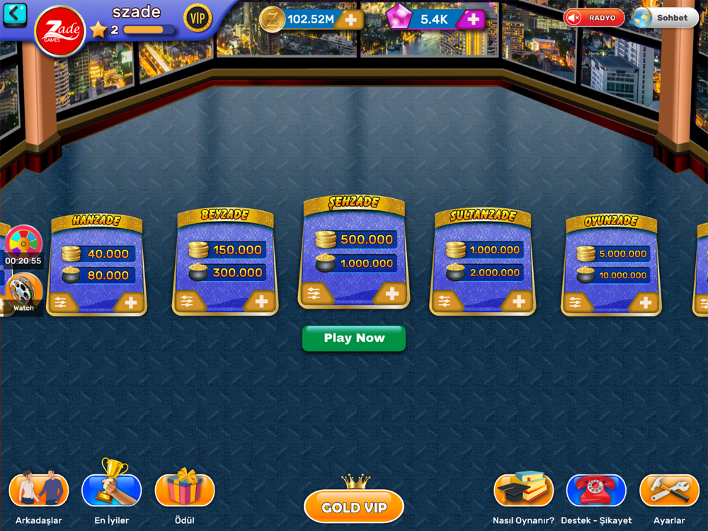 You can join either with your facebook account or your oyunzade.com account. You can widen your social network while playing our game. You can choose which saloon to play the game. You can choose the open table option and invite your friends the table. You can have private chat with your friends.