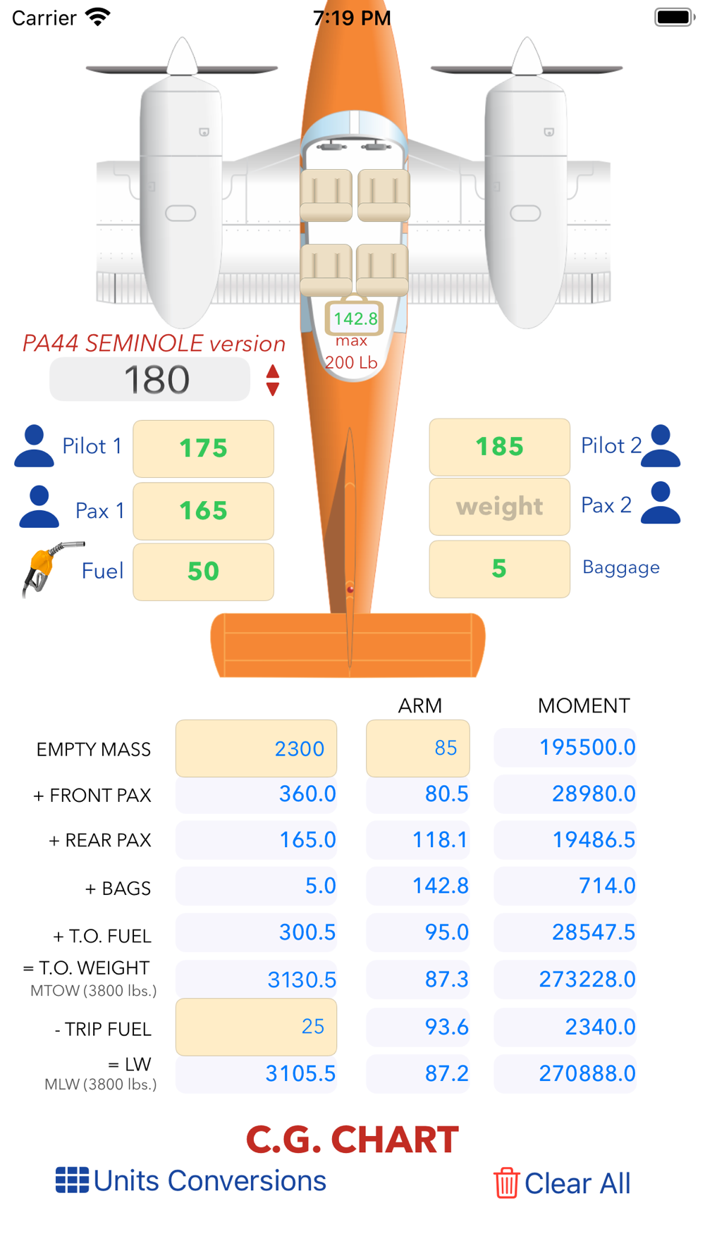 Piper Mass & Balance calculator! Three models in just one App!