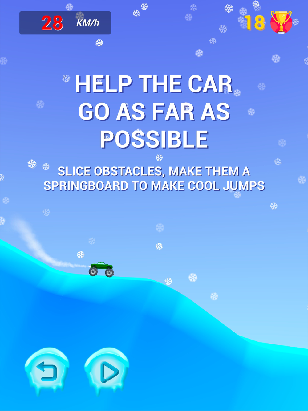 Help your car to reach the finish by slicing various obstacles and use them as springboard