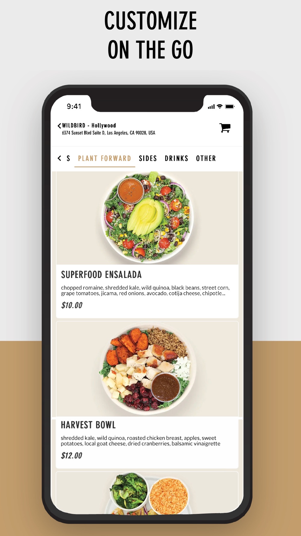 Our brand-new mobile app makes it easier than ever to satisfy your cravings by ordering ahead for delivery or carryout. Choose your made-to-order masterpiece featuring our signature Better Chicken from your favorite WILDBIRD location.