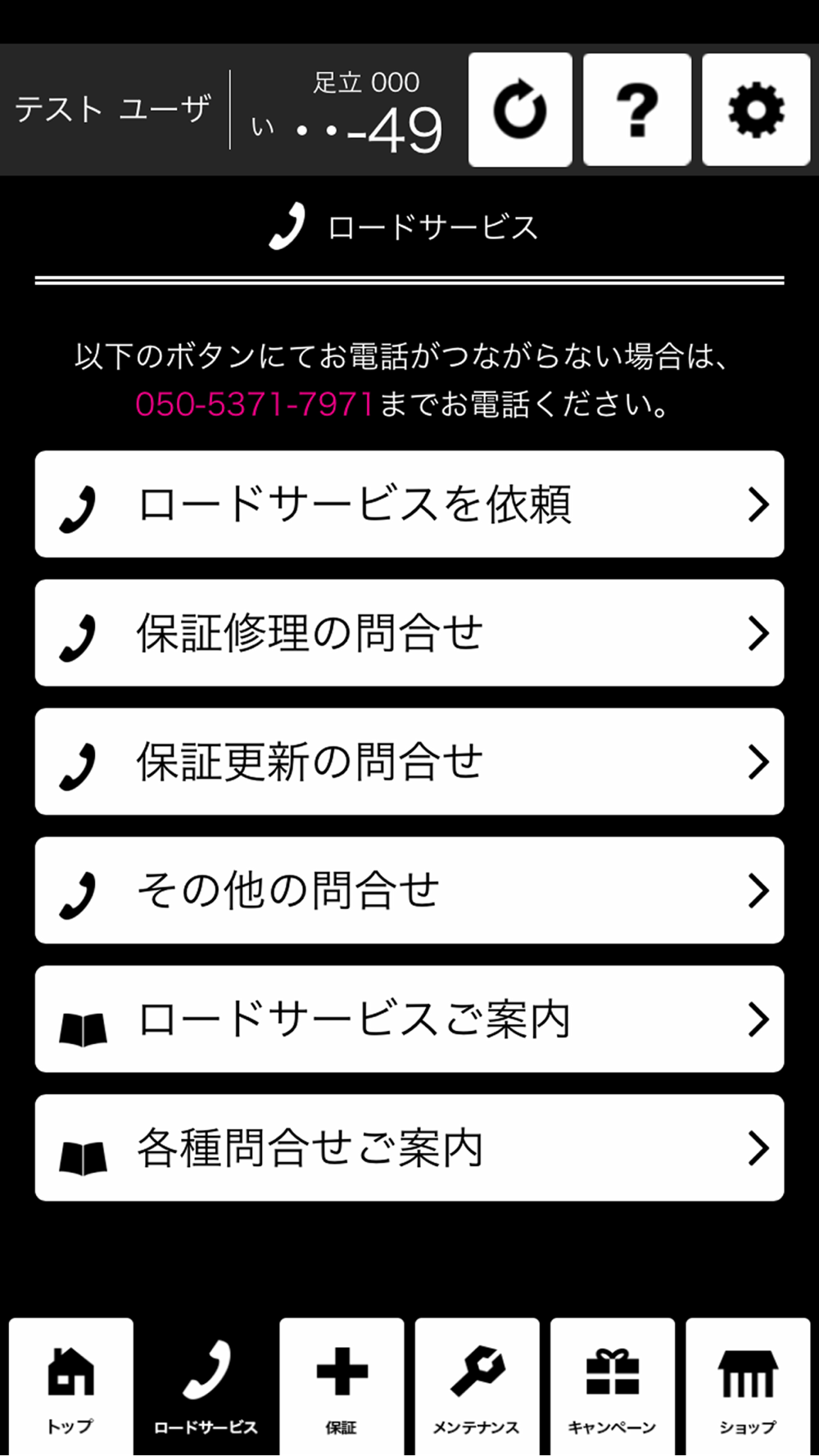 当アプリケーションでは、ご加入いただいております修理保証の保証内容や、保証利用時のご案内、位置情報と併せたロードサービス手配などをご確認いただくことができます。