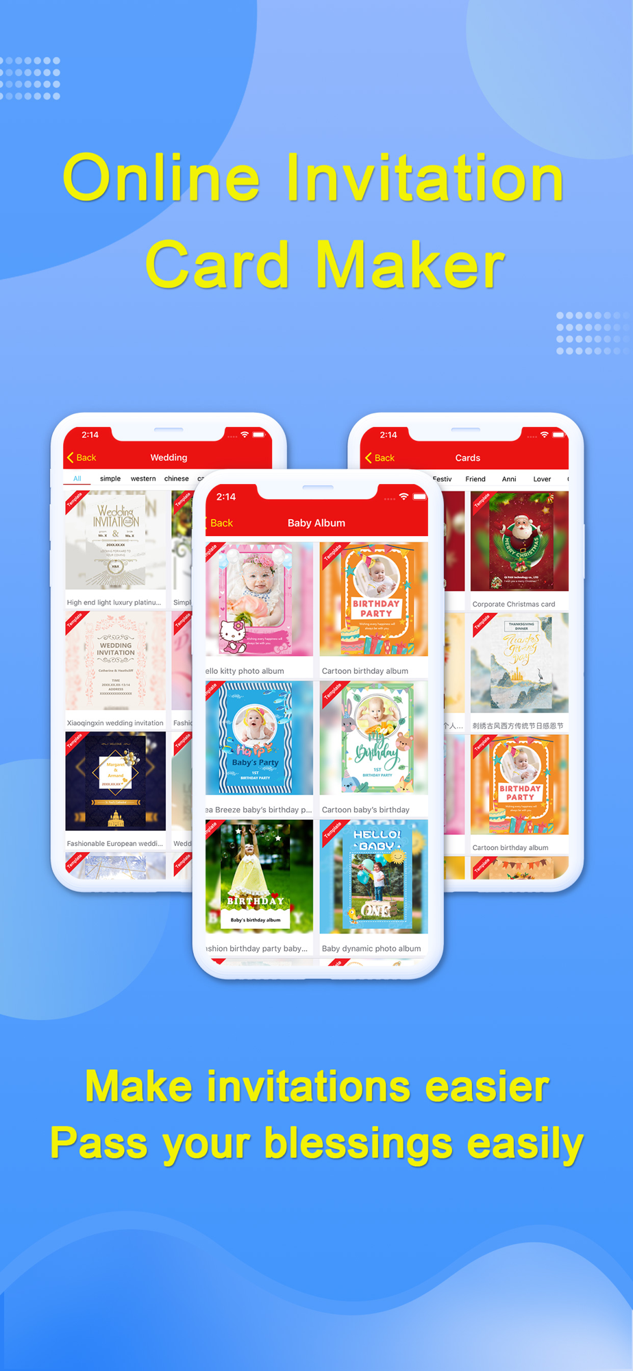 Professional e-invitation making experts, a large number of invitation cards, photo albums, greeting cards and other templates can be used, can be used quickly and easily, self-study will make a beautiful e-invitation, wedding, baby full moon, new year wine, engagement, festival banquet, business meetings, activities, parties, new year wine, party, classmate meeting, relocation, promotion, investment promotion, celebration, conference, Exhibitions, new year's greetings, bookings and other kinds of invitation that we can think of or we have not thought of can meet your requirements. We can help you make a professional electronic invitation letter or invitation card, invitation poster or invitation video.We are a professional software tool for making wechat invitation letters, video album invitation cards and other software tools. With massive template materials, simple and easy-to-use self-service production, one key sharing and one click video generation, we can make friends, customers and relatives feel your sincerity. Professional dedication, so better, we will always provide you with better service, we have been constantly updating the latest fashion and the most fashionable invitation cards, photo albums, greeting card templates or video templates, your satisfaction is our service purpose, we also provide one click commissioned production service, so that you can save more effort and effort, and our professional team will help you make and improve To provide you with better service, only you can't think of it, we can't do it without us (I hope so, we have been working hard). There are dynamic templates, good-looking music albums, vivid videos and other contents. There are various forms of electronic invitation letters. There are always what you need, and a more intimate professional team will provide you with better service.