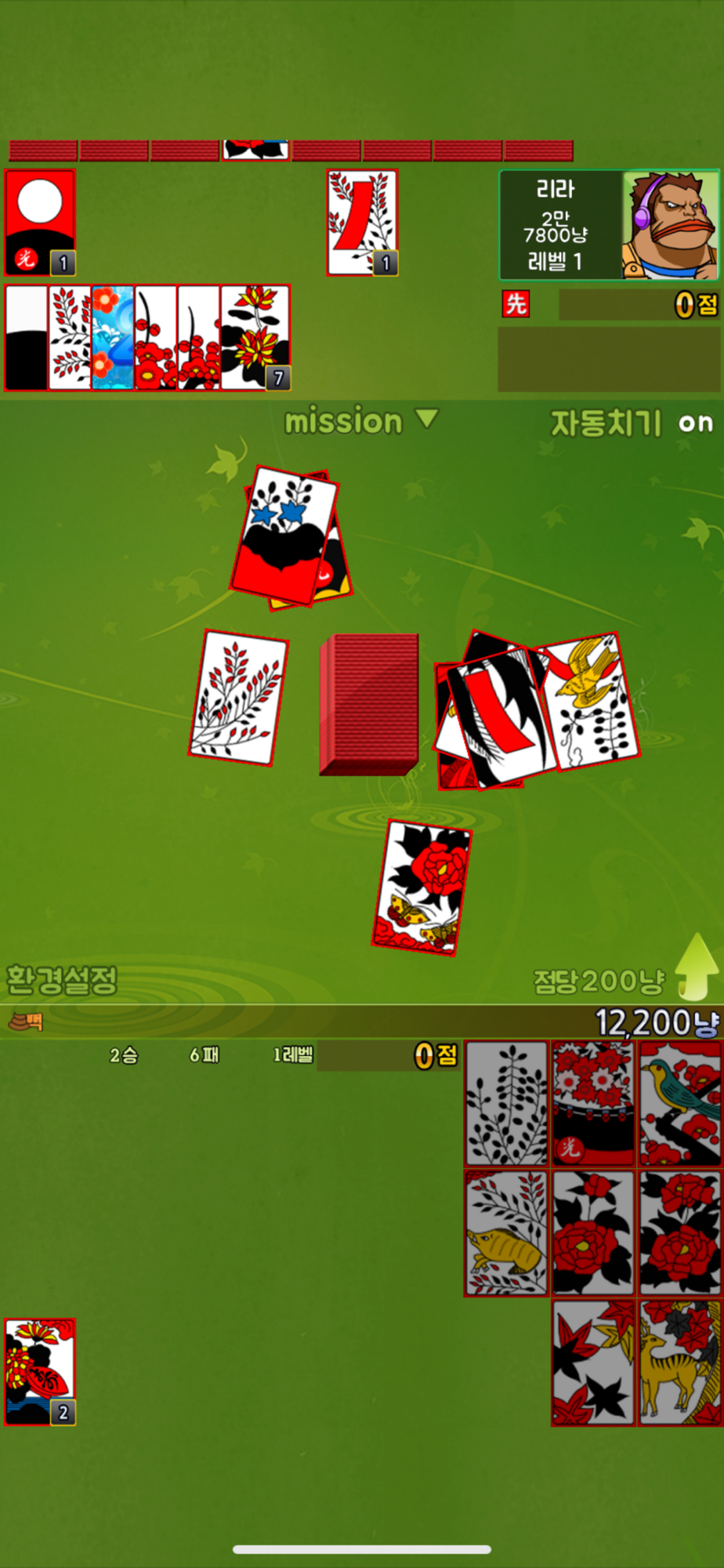 맞고+ 는 한손으로 됩니다. 오른쪽 하단에 패가 몰려 있어 한손플레이가 용이 합니다.