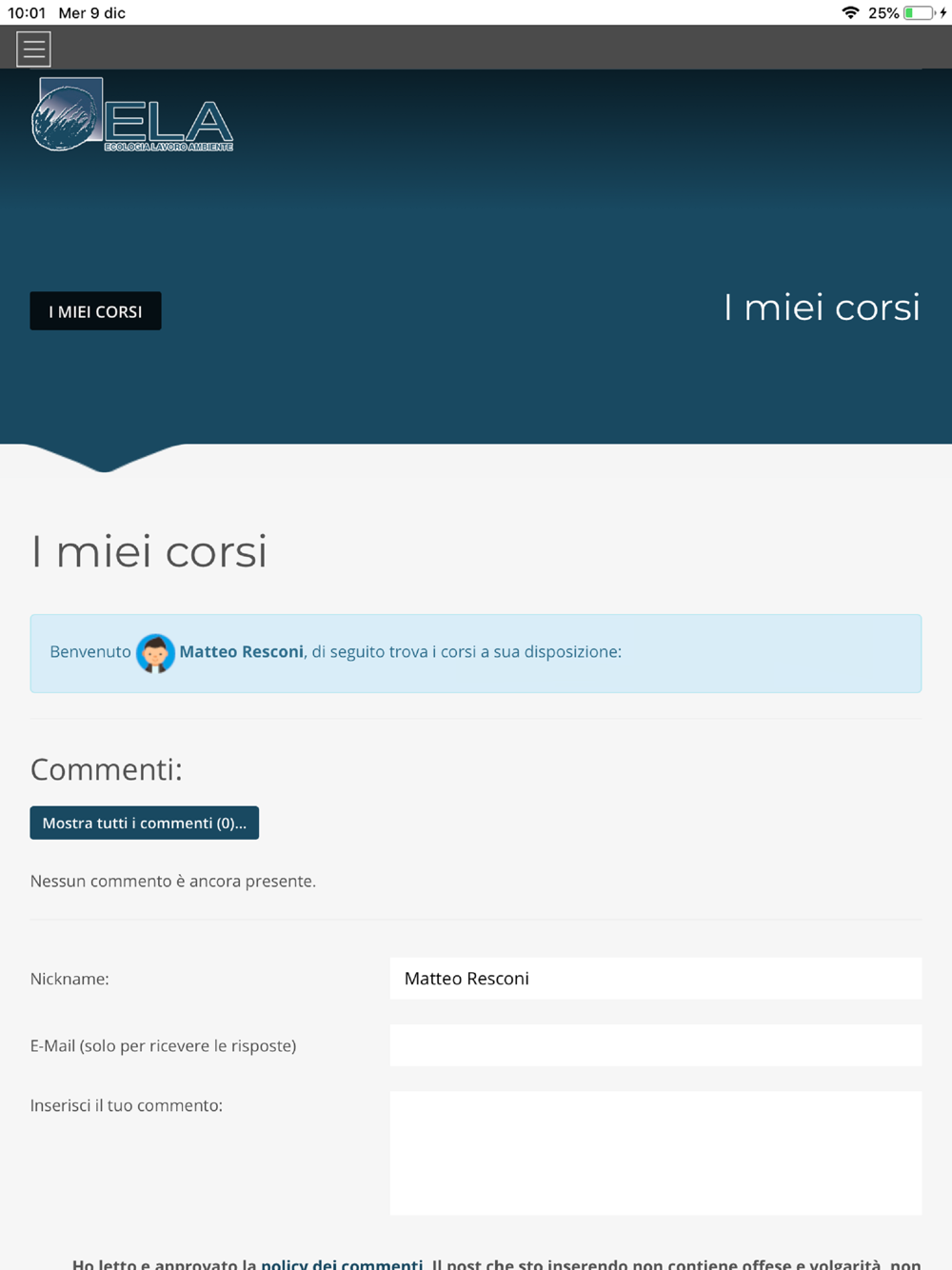 • accedere con facilità alla piattaforma e-learning ELA Srl, per cui hai già acquistato uno o più corsi e-Learning (dal sito di ELA Srl)