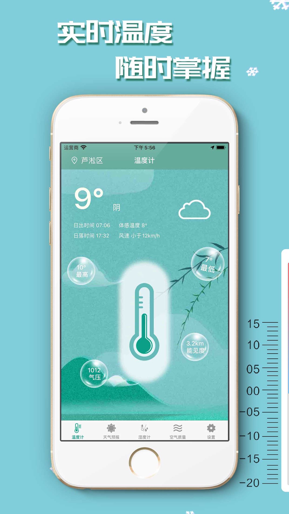 一款以温度计为元素的气温预测app,能够实时反馈你当前位置的温度、湿度、空气质量等,为您提供实时天气的温湿度测量,让您随时随地了解当前天气情况。