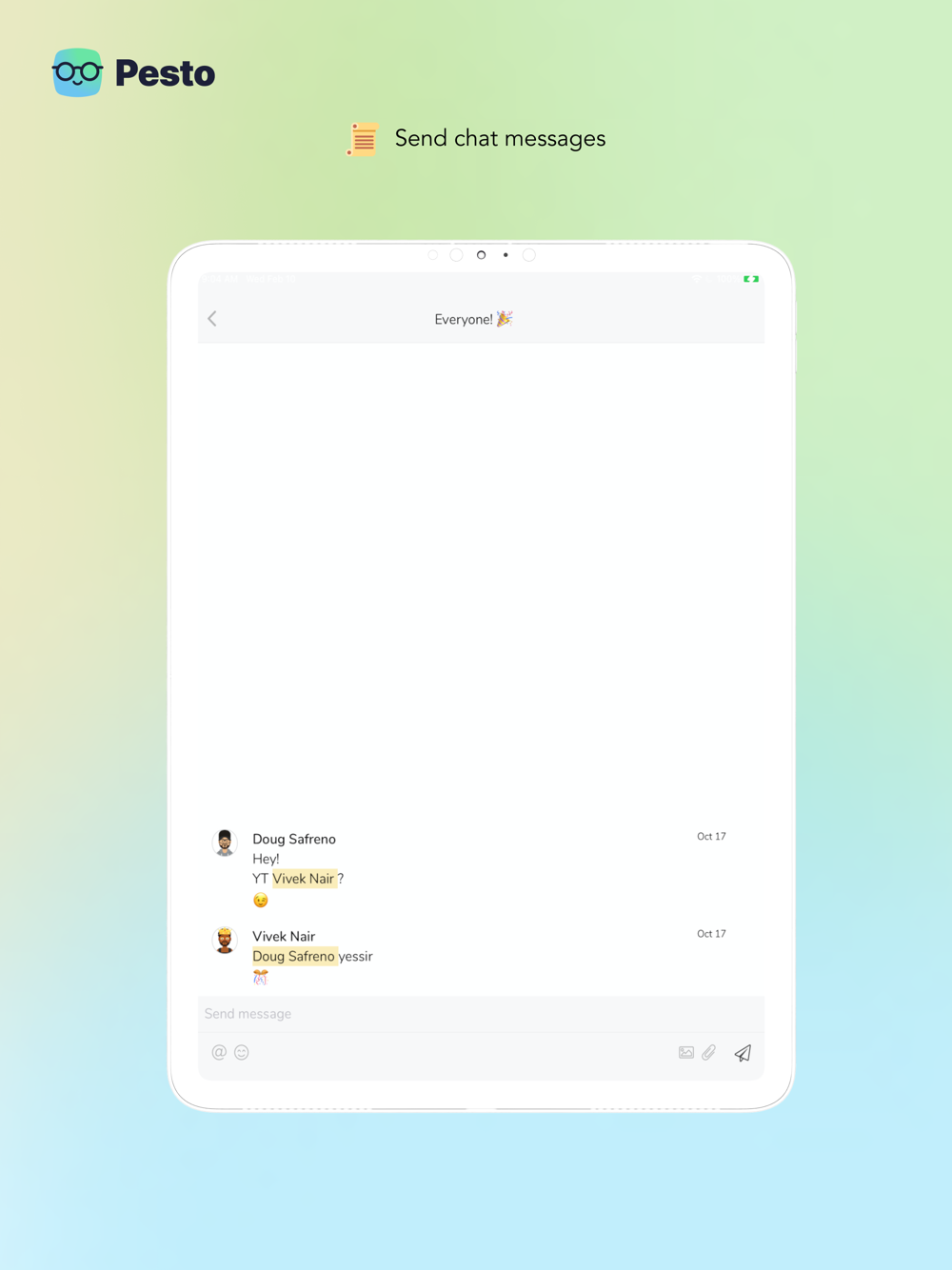 Pesto enables remote workers to frictionlessly start impromptu conversations with audio rooms and direct conversations.