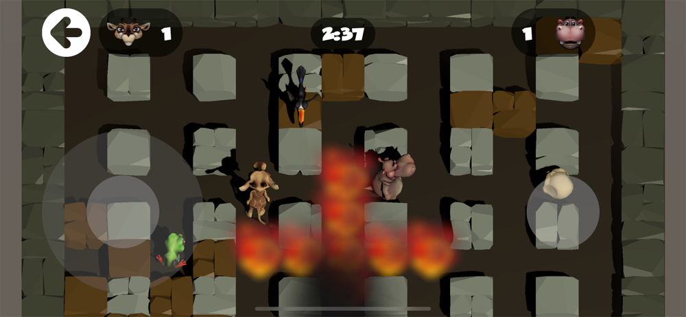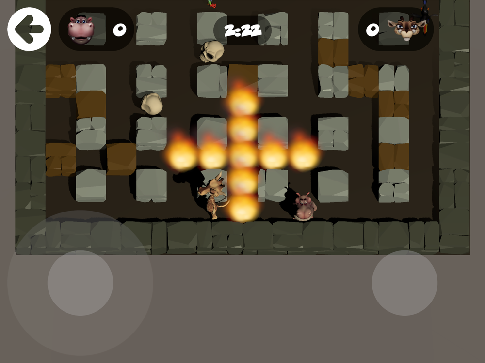 Challenge your friends or play against random opponents. Bomb them and be the last to survive to win the match. Collect powerups to get more powerful bombs.